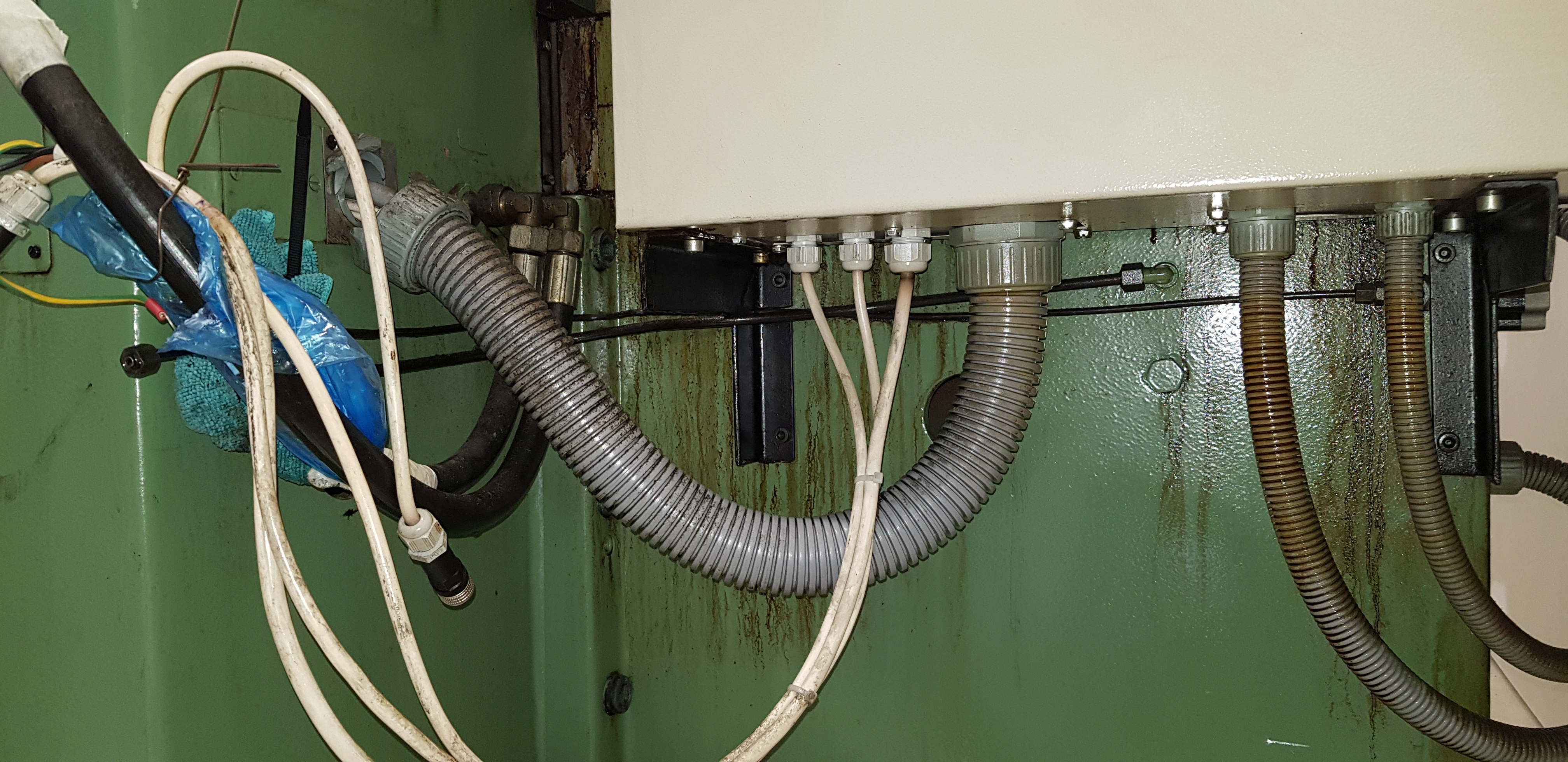 No a jinak, jsem měl připravené lišty na vypodložení stojanu ale nebyly potřeba, jelikož stojan není na válečkách, ale na kluzném vedení s turcitem. Stejně tak vedení stolu je na turcitu. Navíc, stojan, stůl a pravděpodobně i vedení vřeteníku je hydrastatické. Jdou sem trubky od hydraulického agregátu a pak to samospádem zase teče zpět do něj. Na příčném posuvu je šroub s krokovým motorem. U kterého mě vcelku pobavila ta jeho příruba, kus plechu a dva přivařený vingle. Nevím jestli to takhle udělali ti co dělali GO, nebo už to takhle bastlili v té firmě odkud jsem to koupil. K té brusce mám veškerou dokumentaci od roku 1991 co jí ze ZVL firma pořídila. Včetně veškeré korespondence mezi ZVL a firmou a pak všech faktur od prvotního pořízení, za následný několikerý servis, i samotnou GO. Pěkné počtení to je. Faktura z roku 1991 byla 344.100,- Kč za stroj, + dalších 57tis. za zvláštní příslušenství. Příslušenství mi dali ke stroji, 2krát sinusový stůl, vyvažovací stojánek, asi 20přírub, radiusový orovnávnávač, odmagnetovač a další.