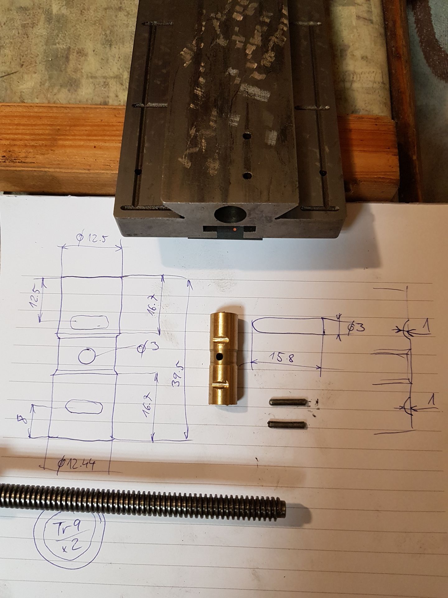 Tak pevně doufám, že hlavní porci vaklu příčného posuvu má na svědomí hřebík (asi), použitý místo kolíčku (jeho průměr je cca 2.8mm, dírka má kolem 3.3)..