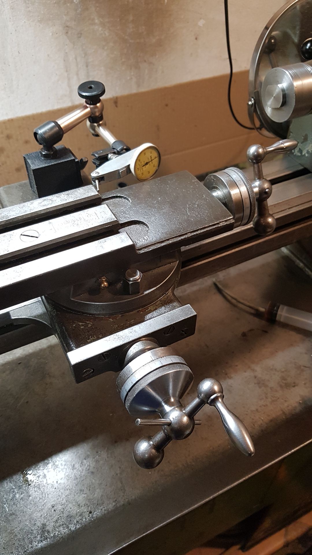 Podélný posuv mi udělal velkou radost, na šroubu vůle téměř není, možná nějaká stovečka a když za to zaberu, je celkový vakl kolem čtyř stovek (časem můžu také ještě zrevidoval kolíček atp.). U příčného je nyní vůle jen v sestavě šroub-matice, bohužel celkem dost velká (12-14 stovek podle místa) a asi v celém rozsahu (šroub jsem vyčistil, před tím to možná někde vymezovala špína). Řekl bych, že šroub není originál, díra pro kolíček byla malá (musel jsem zvětšit) a hodně vyosená, to by asi Schaublin nevypustil.