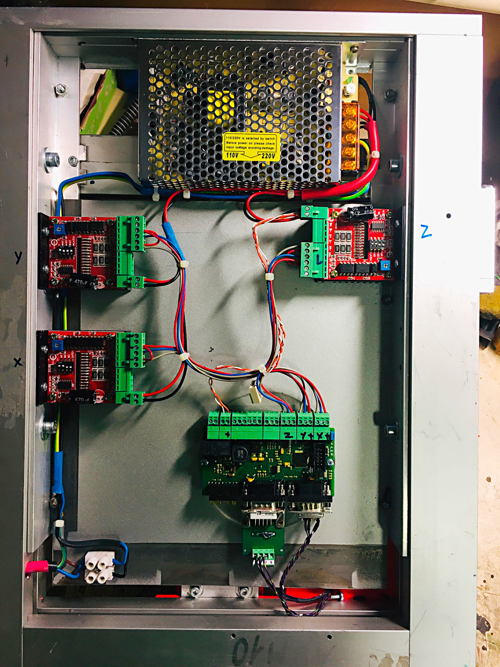 Tak kromě referenčních spínačů a kabelů k motorům (ty jsou stíněné) je elektro hotové.