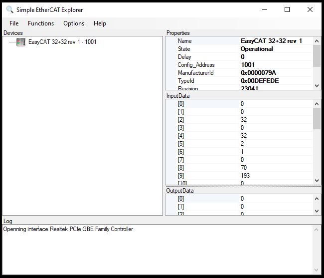 Zatím to vyhodnocuji jen pomocí programu Simple EtherCAT Explorer pro Widle.
