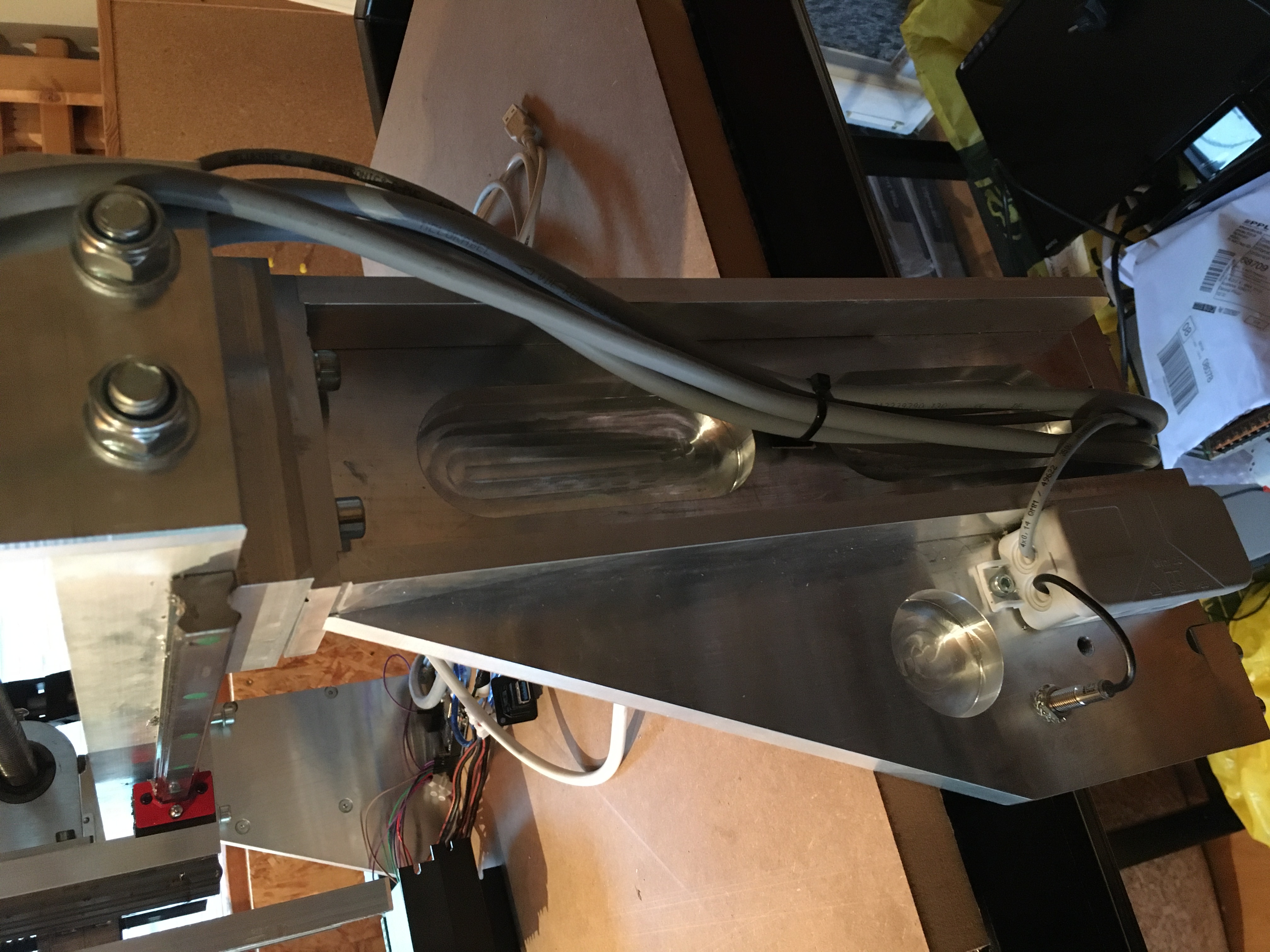Prodám rozestavěný cnc router. Základní rám železo, zbytek hliník. Rozměry š.800, d.1000 a v. po stůl 1040, celkem 1740. Obráběcí plocha 700x500x200. Výškově stavitelné nohy s gumovou podložkou, kabely nataženy v kabelových řetězech a zapojeny k motorům a ind. snímačům. Indukční snímače na kalibrování, lineární vedení hiwin. Osa Y trapézový šroub 16x4 a krokový motor Microcon sx23 2727 přes řemenici, osa Z kuličkový šroub hiwin stoupání 5mm a motor Leadshine 57HS09 také přes řemenici, osa X pouze ložiska na koncích a domek na motor, ale zatím bez šroubu a motoru. Zamýšleno na připojení arduino uno s cnc shieldem. Foto mailem. Cena 15000kč