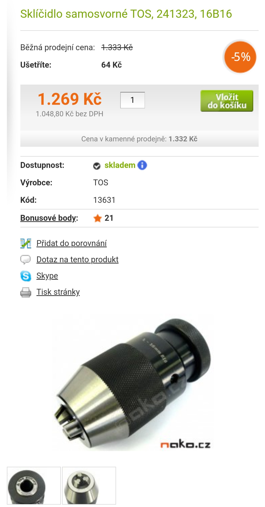 Koupil jsem rychloupínací OPTIMUM, co se uvádí výše, jen s MK2, no nic moc, přesnost cca 0,12 mm, což mě štvalo a tak jsem zkusil klasiku, nakonec jsem skončil u tohoto https://www.kovonastroje.cz/Nastroje-pr ... -15mm.html, naměřená házivost 0,05 mm, což mi docela vyhovuje, dělá se i rozsah 1 až 16 mm.