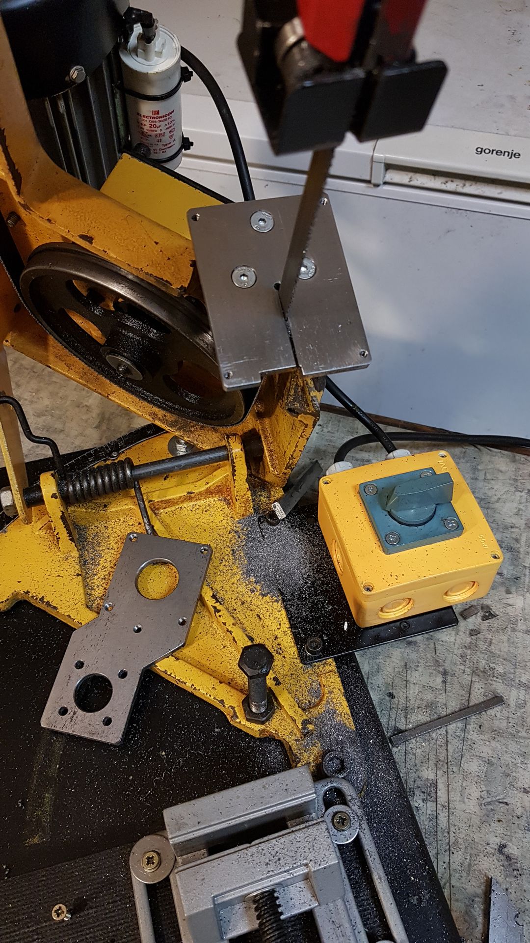 Co jsem ho pořádně napnul, přestal pás padat a řeže to pěkně! Pomalu, mám to pro začátek na radu Milana199 na nejmenší rychlosti (20m/min), ale řez je pěkný a celkem rovný i přesný. Ukázat myslíš natočit video, jak tím něco řežu?