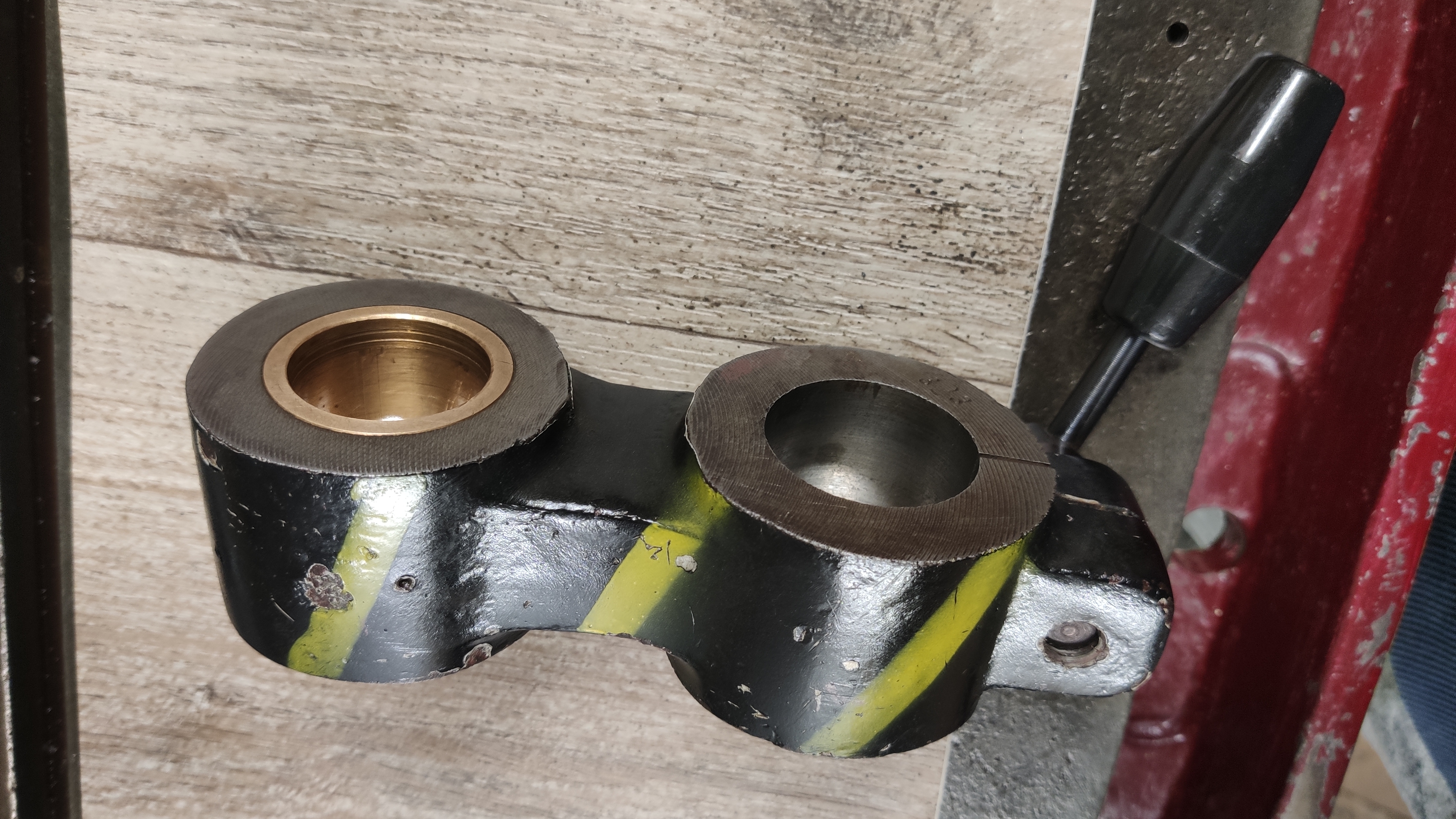 Na vnitřní straně ložiska jsou u jednoho okraje viz. foto škrábance které i vystupují a proto nelze do ložiska vložit trn.