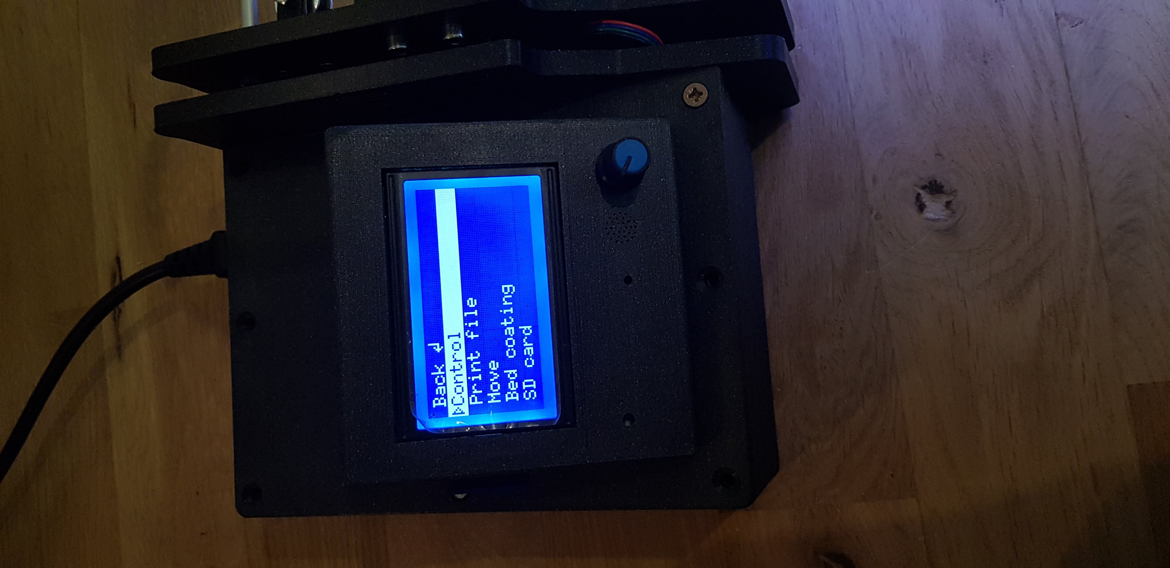 Myslel sem si, že než to nakreslím a příjdou díly, vyjde verze 2 kde už by měla být nativně podpora PWM, ale bohužel. Takže jsem skončil u verze 1.0.4 která nepodporuje přímo pwm, tak sem si to tam dopsal a výkon jde regulovat v rozsahu 0-255 nominálního výkonu laseru. Pak mi ještě chyběla funkce jak z menu zapnout laser na nejakej rozumnej výkon tak, aby šel zaostřit, tak sem si to taky dopsal a nakonec sem ještě dodělal do menu rozsvěcení led pasky, která je v profilu 20x20 a osvětluje plochu.