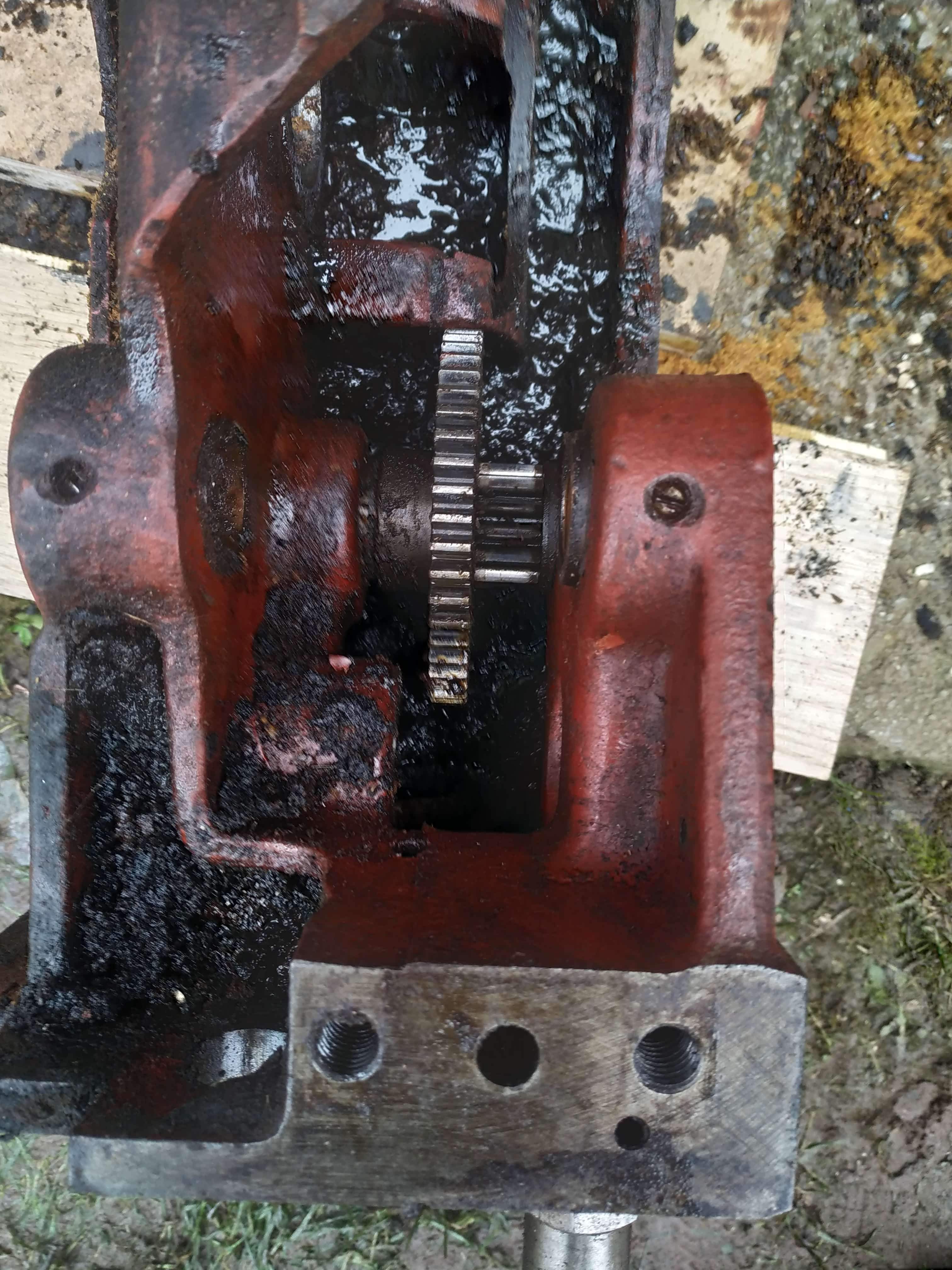 Dělal jsem to nedávno a už si to nepamatuju. :) Ale vím, že ta futra šla ven trochu hůř. Přijde mi, že součástí hřídele je to malé ozubené kolečko, takže směr je jasný. Myslím, že jsem do hřídele vyřezal závit a přes podložku do ní šrouboval šroub a tak ji vytahoval. Je to ohleduplný způsob, litina takhle určitě nerupne.
