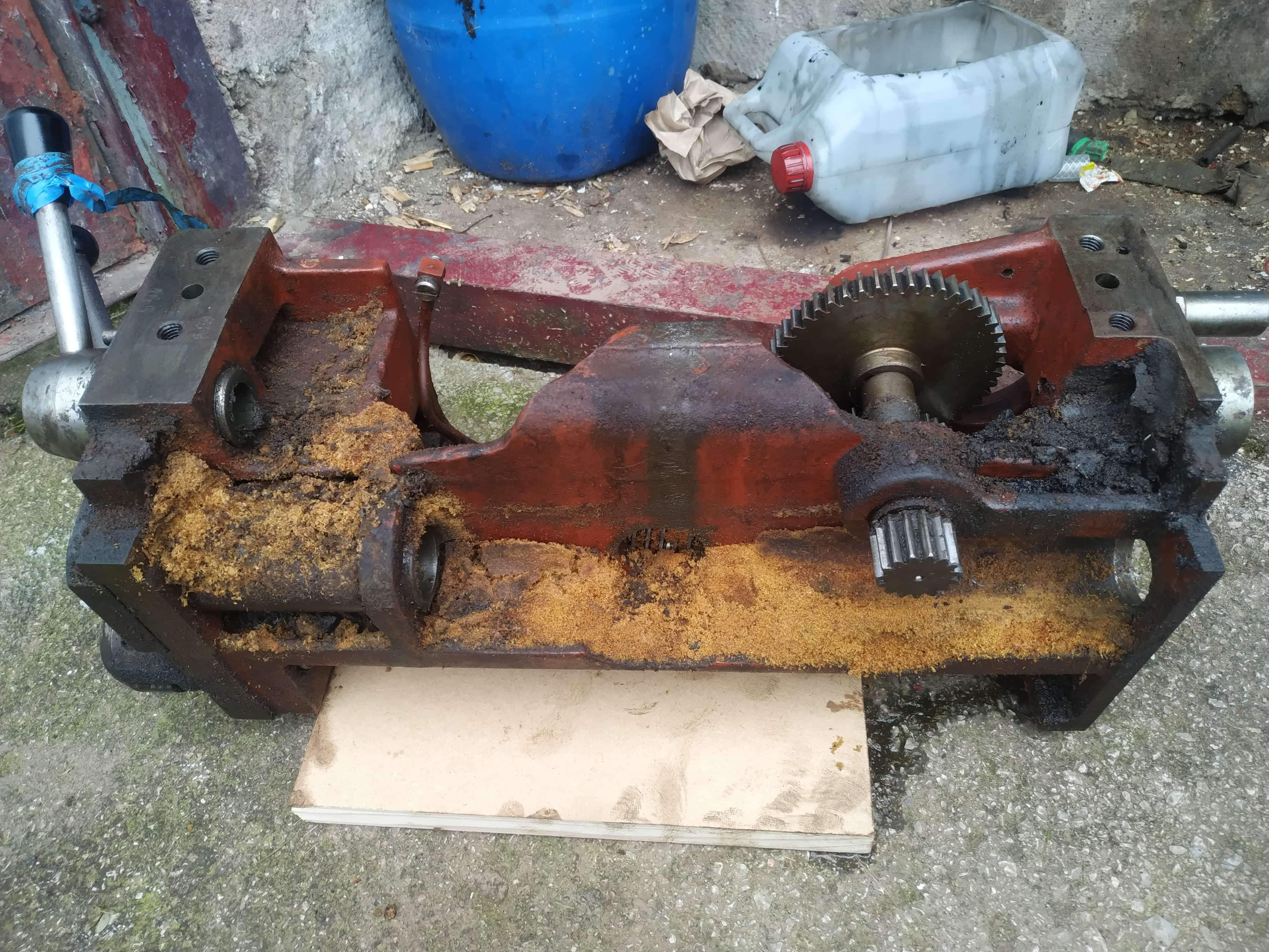Ináč sa to rozoberá ľahko. Ložísk tam veľa nieje. Ozubené kolieska vypadaju dobre. Ešte ma čaká rozoberanie tej kolísky čo je vnútri suportu.