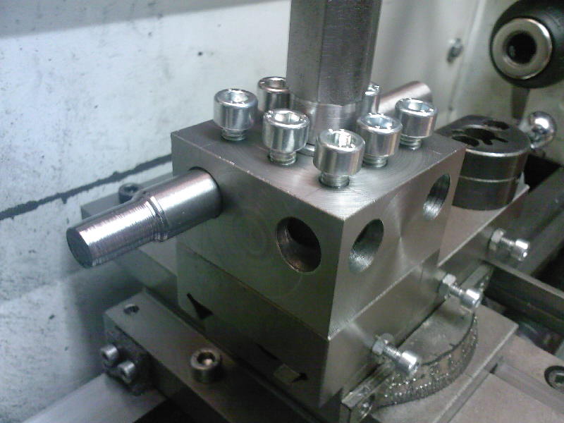 Ještě jedno řešení jsem našel při procházení starších příspěvků na stránkách uživatele Radek. Sundat držák nožů a udělat celou novou hlavu. Byla by to kostka 60x60x45, středem vrtaná na upínací šroub. Pak by se to upnulo na sáně a vyvrtala/vystružila díra, jak psal Monteg.