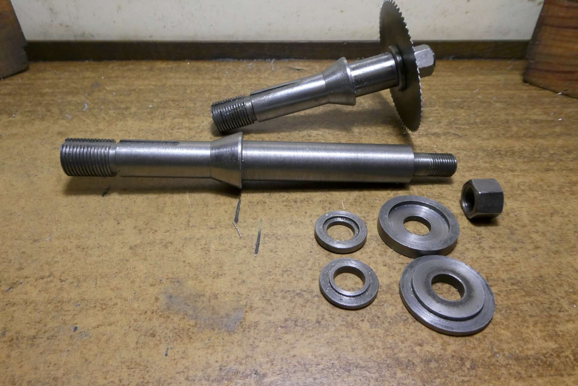 Namísto upichování raději používám kotoučovou pilku (0,4 x 63), zejména při větších seriích. Pro použití pilek mám kleštinové trny s redukčními kroužky na různé velikosti. Trn má 10 mm a závit M 10 x 1.