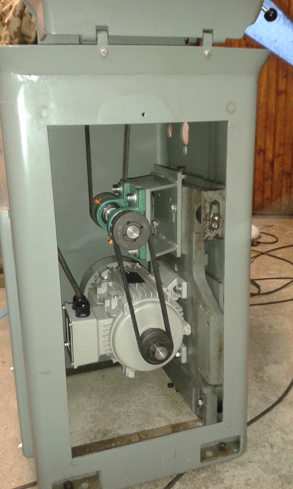 Přesně tak, řemenice z vřetene jsou uprostřed toho prostoru, takže ani z jedné strany to tam prostě nevleze
