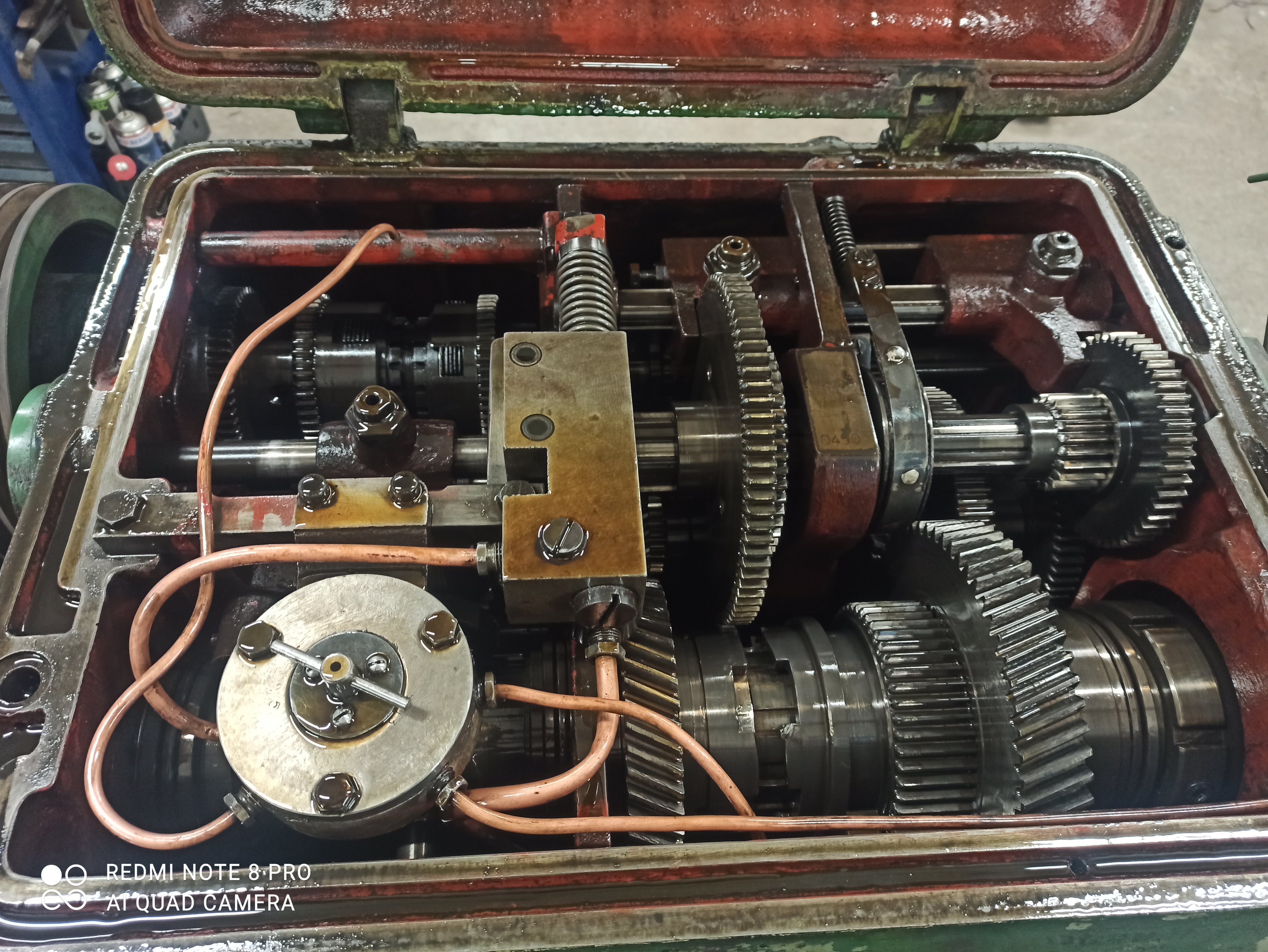 Pak jsem řešil jiné věci, jako opravu S028 a pod, a konečně letos jsme se dostali k tomuto většímu mazlovi. Začali jsme rekonstrukcí elektroinstalace, a soustruh se točí (pocitově příliš rychle), všechno vypadá že jakžtakž jde, ale spousta věcí mi není jasných - hlavně výrobce a model.
