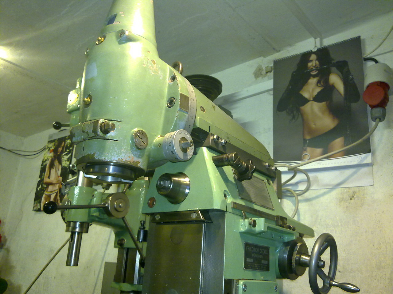 JLo ma požiadal o fotky hlavy z maďarskej frézy ME 250. Má výsuvnú pinolu, ISO30 a pasuje na fa2u. Potrebné bolo iba upraviť (zmenšiť) prítlačné rybiny na dotiahnutie hlavy k zvislej rybine. Potrebujem ešte vyrobiť vťahovaciu skrutku a držiak odchýlkomera. Snáď ani nemusím hovoriť aký "upgrade" to je.