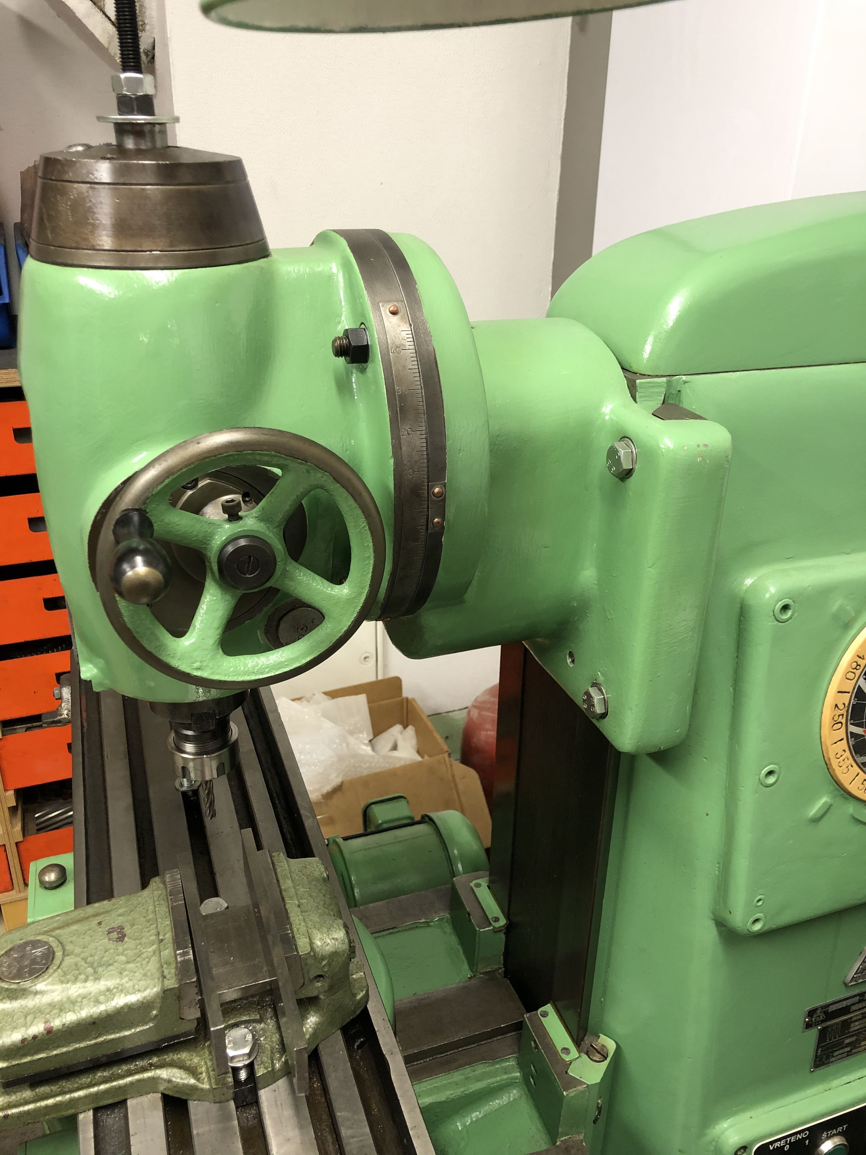 JLo ma požiadal o fotky hlavy z maďarskej frézy ME 250. Má výsuvnú pinolu, ISO30 a pasuje na fa2u. Potrebné bolo iba upraviť (zmenšiť) prítlačné rybiny na dotiahnutie hlavy k zvislej rybine. Potrebujem ešte vyrobiť vťahovaciu skrutku a držiak odchýlkomera. Snáď ani nemusím hovoriť aký "upgrade" to je.