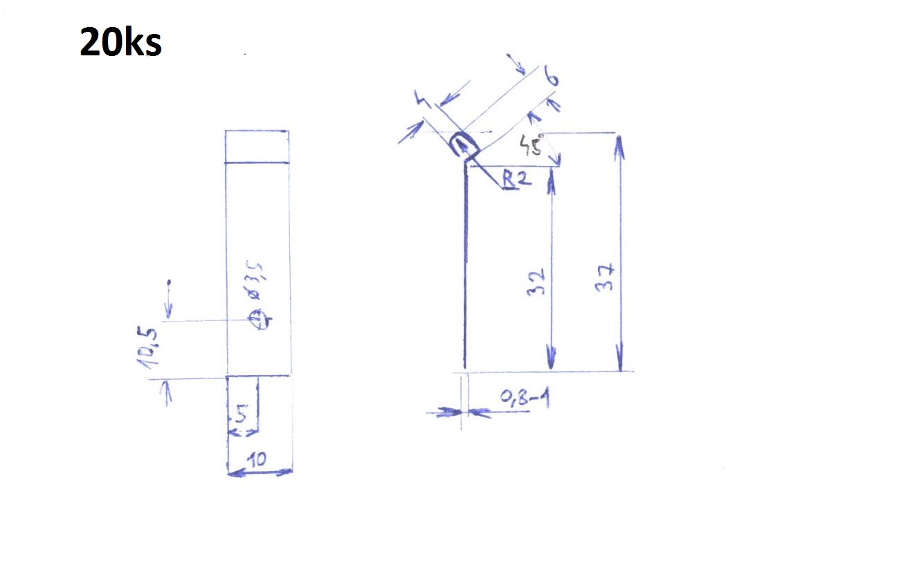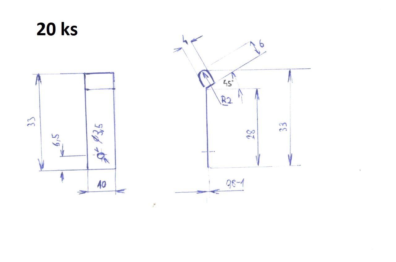 Co znamená kóta 0.8 — 1 ? Já bych ji asi četl jako "vem nějaký plech co se válí v bedně pod ponkem a udělej to z toho". V tomhle bodě bych doporučoval výkres upravit. Na tyhle ohyby se bude muset udělat nástroj (sada nástrojů) a to zpětně znamená, že by měly být důkladně okótované, třeba vnitřní radius těch ostrých ohybů (nula to určitě nebude). Samozřejmě se to bude dělat ve vyžíhaném stavu, takže i nějaké to kalení by tam chtělo přesně napsat. A jak už psali výše, nejlepší by bylo to celé překonstruovat :-) To volné rozpětí možných tlouštěk naznačuje, že pro překonstruování je tam prostor.