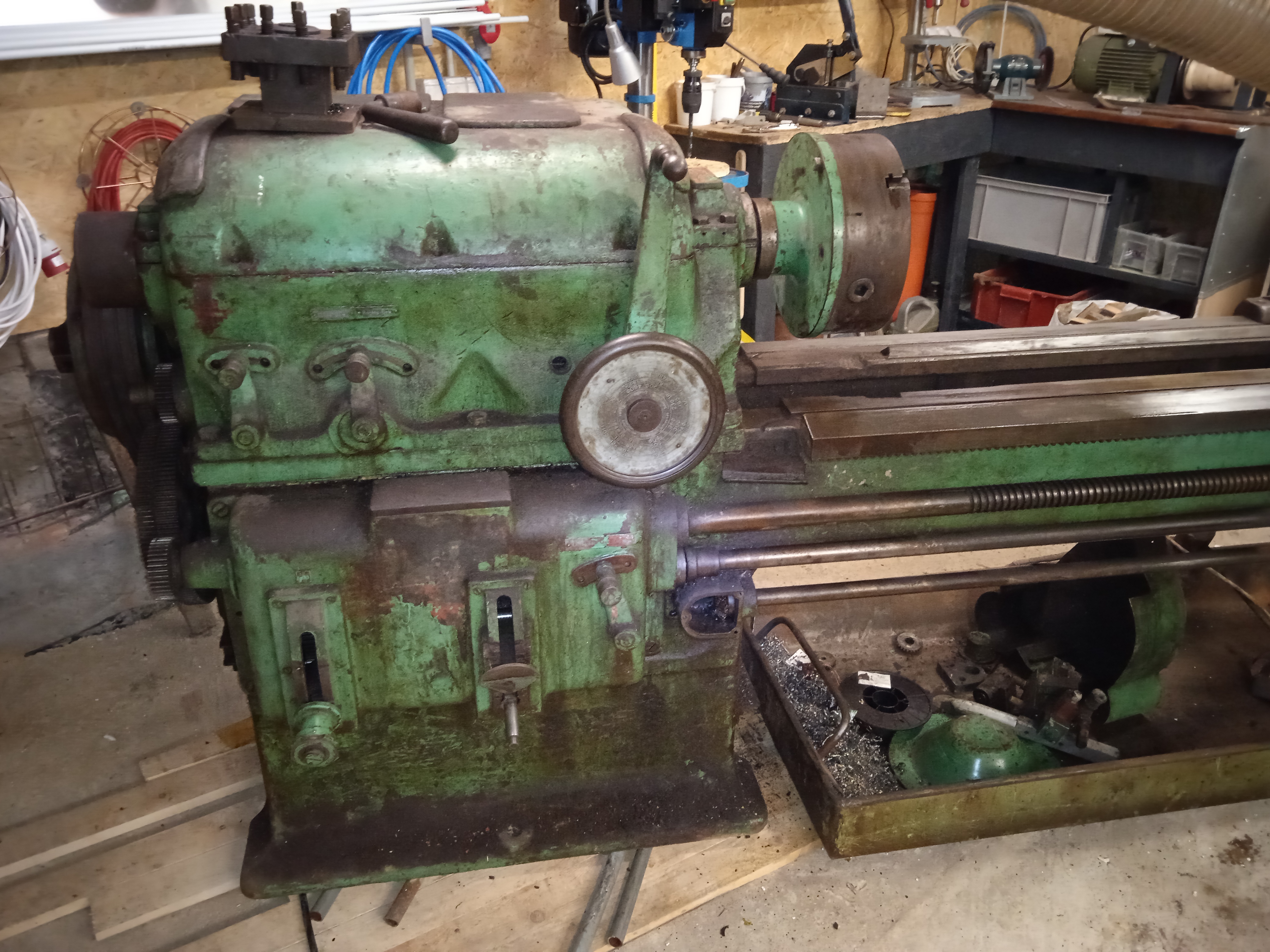 koupil jsem za hubičku starý soustruh. Momentálně ho dávám do kupy (čistění, seřízení vůlí, drobné opravy krytů, výměna oleje a barva) Potřeboval bych pomoci s identifikací. Na stroji není žádný štítek. Popisky u převodových pák jsou v němčině, tak předpokládám, že to je Němec. Kdyby někdo poznal typ, popř. měl k dispozici dokumentaci, budu rád.