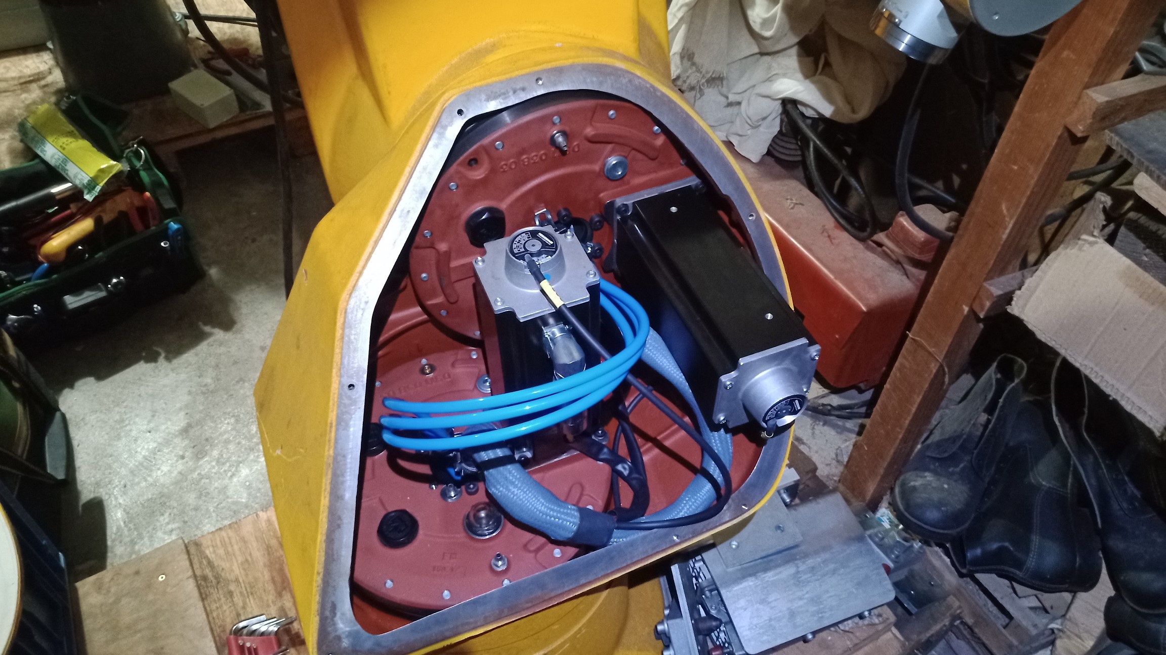 Robot je z vetsi casti (vse krome zakladny) z hlinikovych odlitku, konstruovan pro extremne presne pohyby.