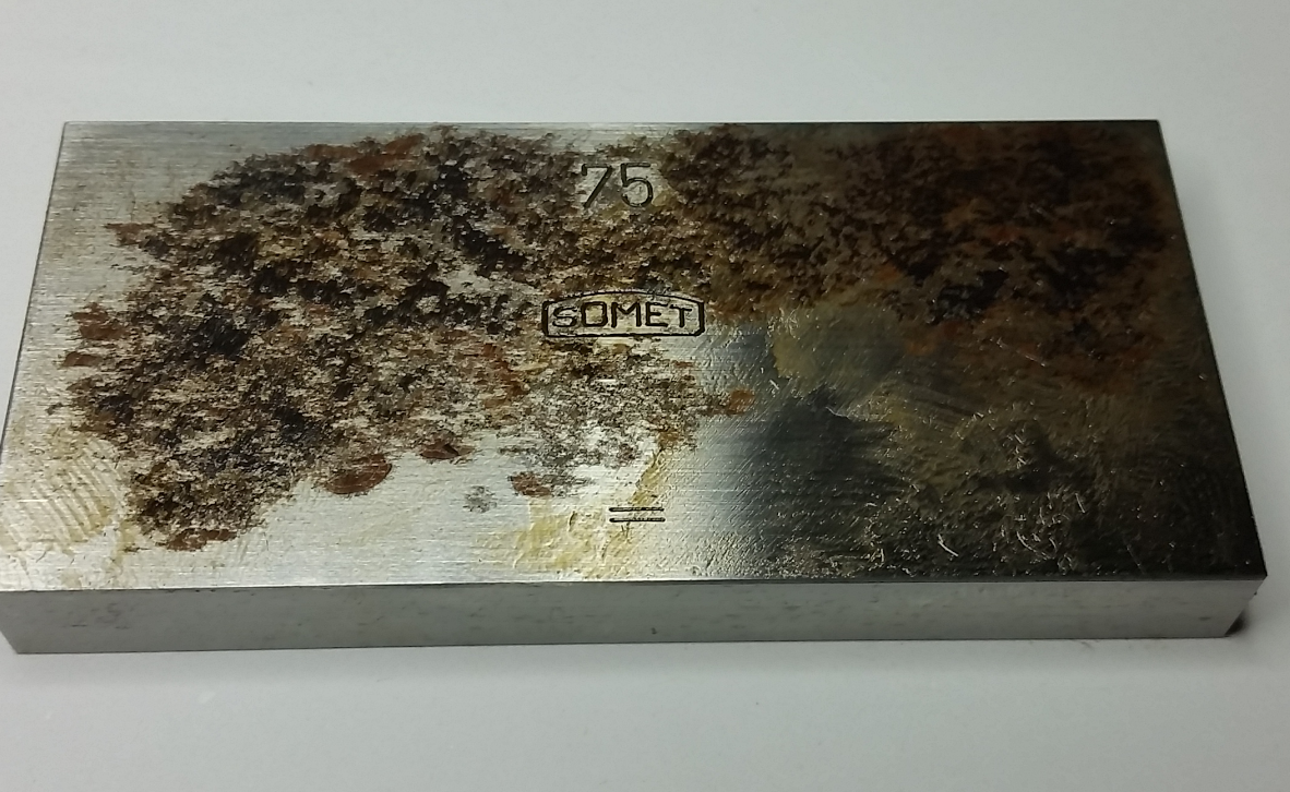 Ve vaně mě zaujaly nějaké střípky : Správně ! Je to johansonka. Ten debil ji použil jako podložku na vyosení nějakého excentru. Johansonka praskla a kus se vzpříčil mezi sklíčidlo a nástroj. Tak jsem šel okouknout ze které sady chybí a zjistil jsem že chybí stejný rozměr i keramická Mitutoyo z kontrolní sady.