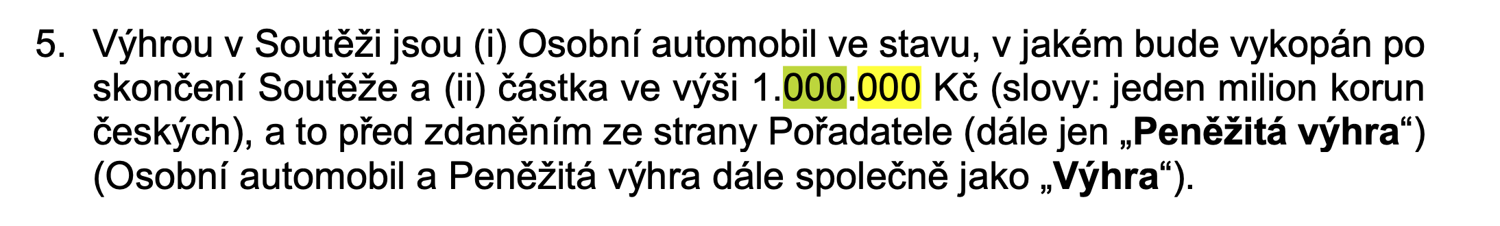 Precetl jsem si pravidla hry. A nikde zminka o tom ze vyherce dostane ten milion korun.. Jasne auto tam je napsane ale co ty prachy..
