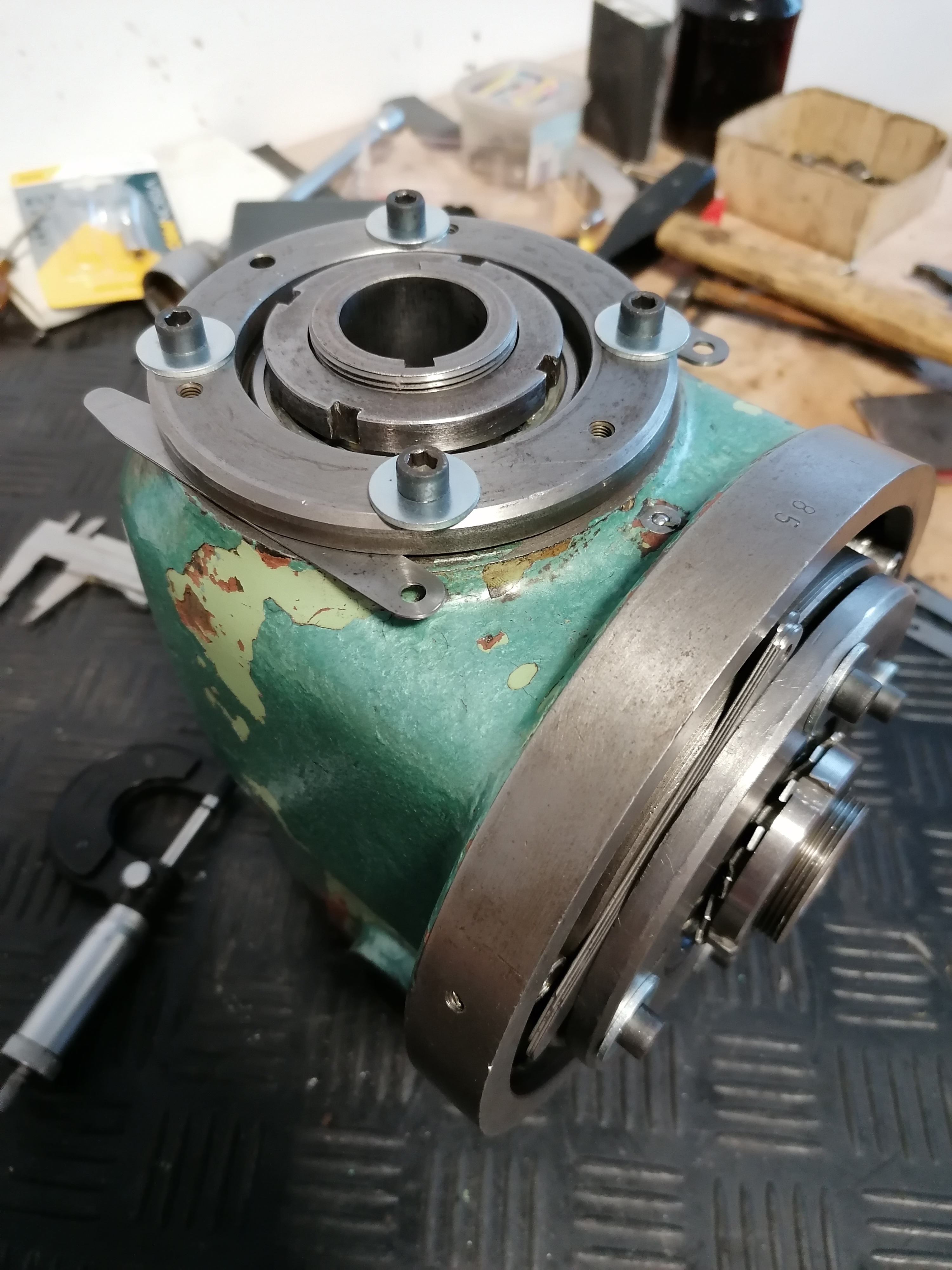 V pinole sú navrchu dve axiálne ložiská a na spodu sú válčekové ložiská, ktoré nemajá vnútorný krúžok a bežia po vretene. Môže byť problém ak má vreteno už po obvode vybehané dráhy. Moje asi malo kedže niekto dráhy opravoval tvrdochrómom ale podľa mňa je to veľmi nevhodná aplikácia a čakám že to bude v budúcnosti zdroj problémov.