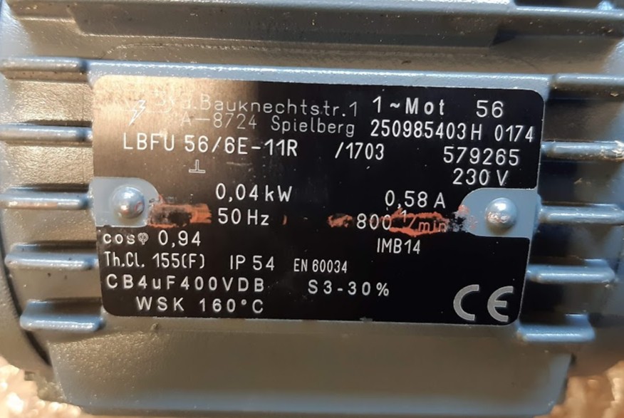 Přikládám obrázky štítku motoru, zapojení frekvenčák - motor. Motor je v pohodě, při přímém zapojení jede. Měl jsem zapojeno s přepínačem otáček, točí spolehlivě na obě strany. Při zapojení frekvenčního měniče jsem provedl základní nastavení parametrů, přidal dle návodu klemu na vstup napájení měniče, přepnul řízení na panel.