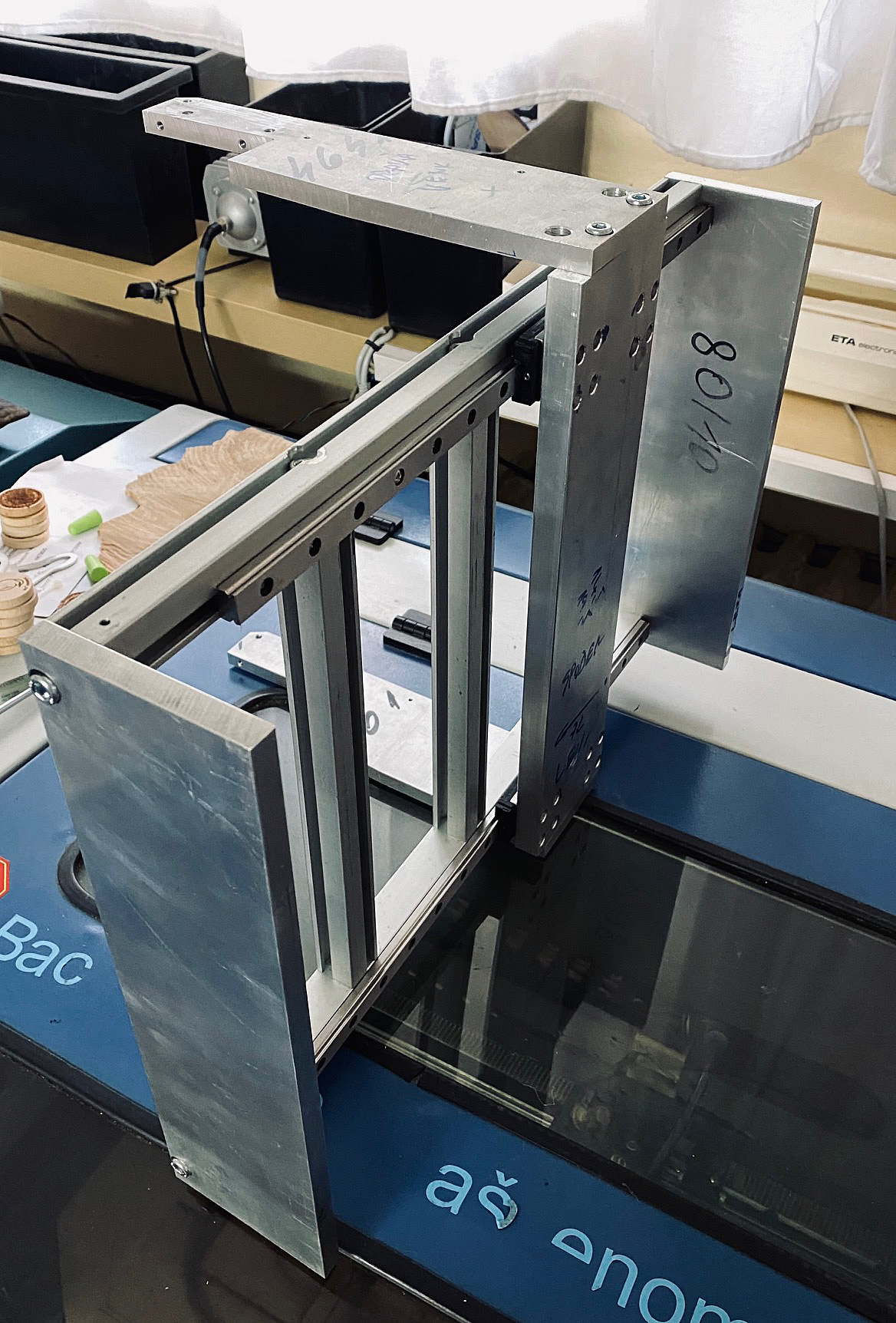 Tak konečně nastal ten pravý čas. Velmi kriticky jsem zhodnotil první konstrukci a snad jsem vyloučil ty nejzásadnější problémy. Základnu teď tvoří velmi tuhý rošt z 27mm profilů a dvě čela z masivního materiálu. Hormí deska je 10mm silná frézovaná hliníková plotna. Pevný portál s pohyblivým stolem jsem nahradil pohyblivým portálem. Výhodou je, že nemusím zakrývat lineární vedení (použité 12mm vedení z TW). Budu muset otestovat, jestli to "utáhne" NEMA17 s nějakou slušnější dynamikou, přeci jenom to je portál s dvěma osama a vřetenem. Přinejhorším tam dám 1Nm krokáč Sonceboz, s drobnejma korekcema se tam vejde. Fotky budou následovat.