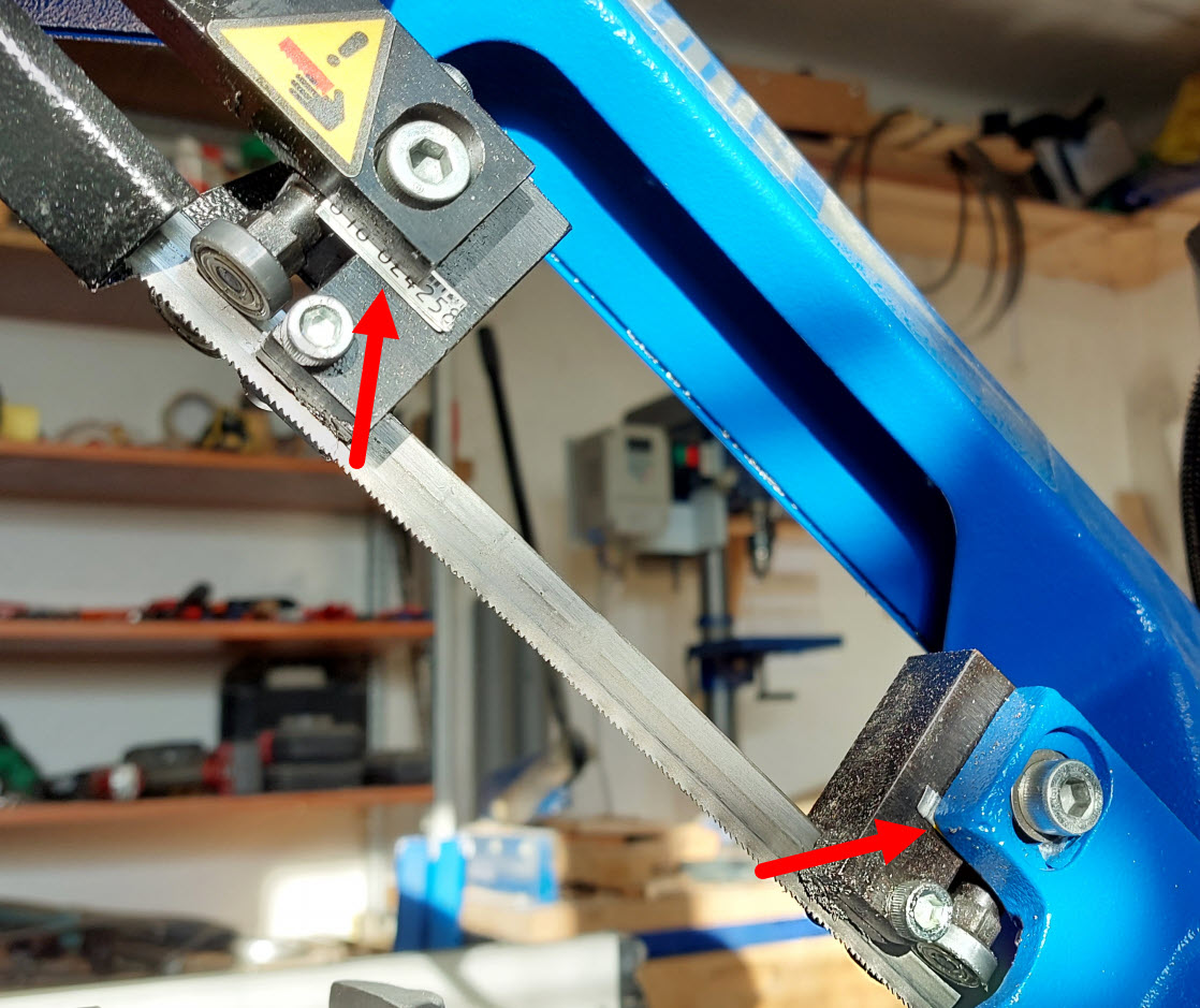 Jelikož mi hrubostí nevyhovoval dodávaný pás (potřeboval jsem řezat tenkostěnné profily), tak jsem koupil rovnou nové pásy s jemnějším zubem.