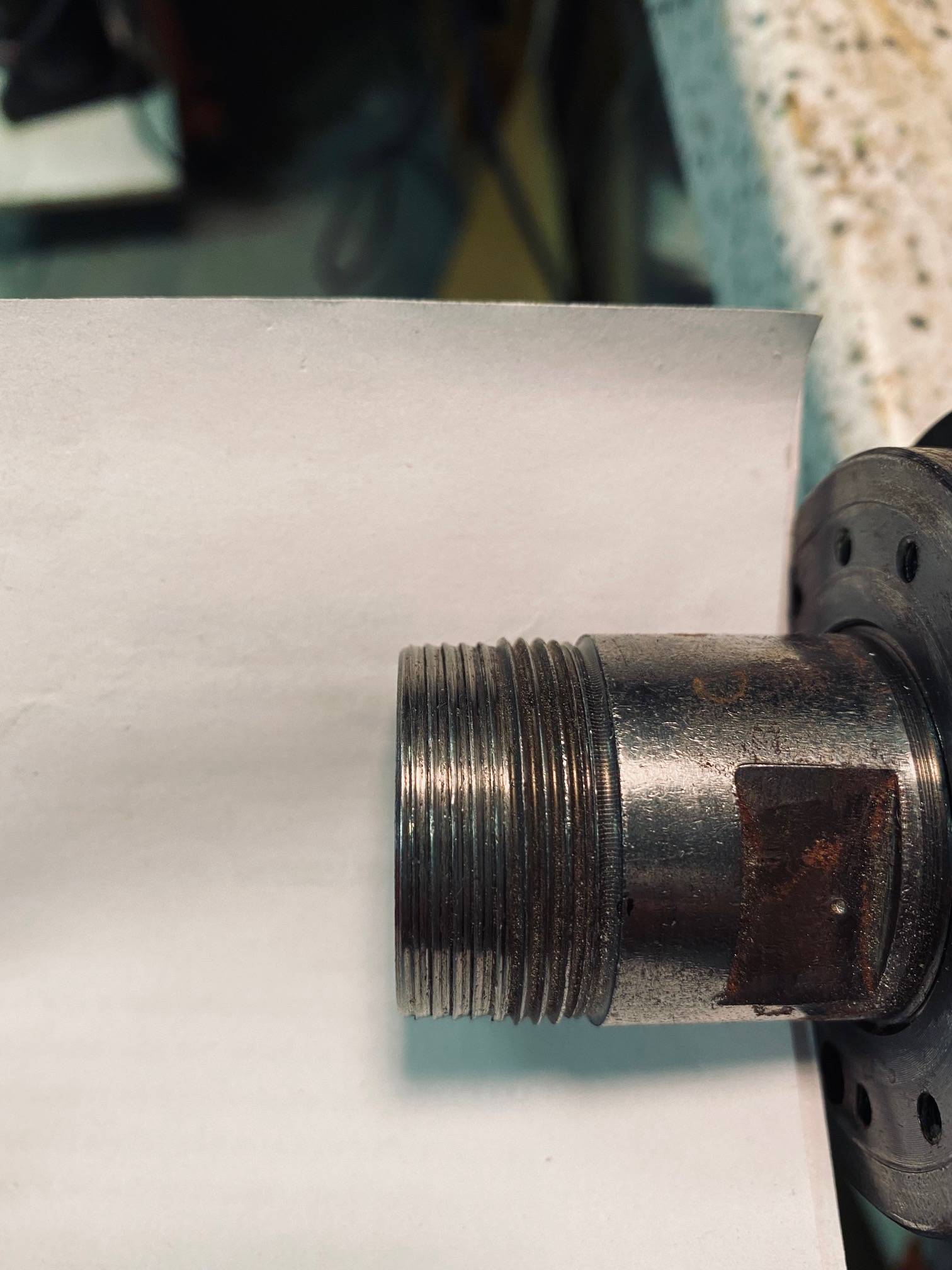 Jak vzniklo poškození nevím, takhle jsem ho koupil. Původní projekt, kde by se dalo použít bez problémů jsem nerealizoval, přesněji udělal jsem to jinak. Nechat válet 4,5kW vřeteno ve skříni je škoda, hlavne když by se dalo modifikovat na mojí FN20. Průměr závitu je cca 32mm.