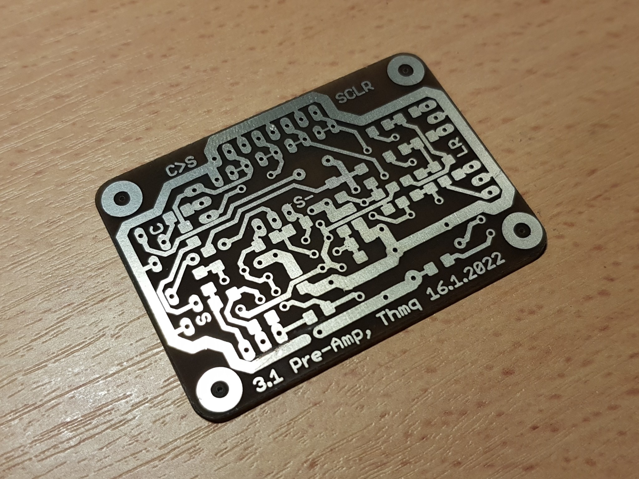 Petr na tom udělal nějakej plošňák, nic převratnýho, žádný SMD. Výsledek byl docela pěknej, bez otřepů, ale prý to trvalo hrozně dlouho. Já si mašiku prohlížel bohužel jenom cca 20 minut, neb jsme odjížděli na hory.