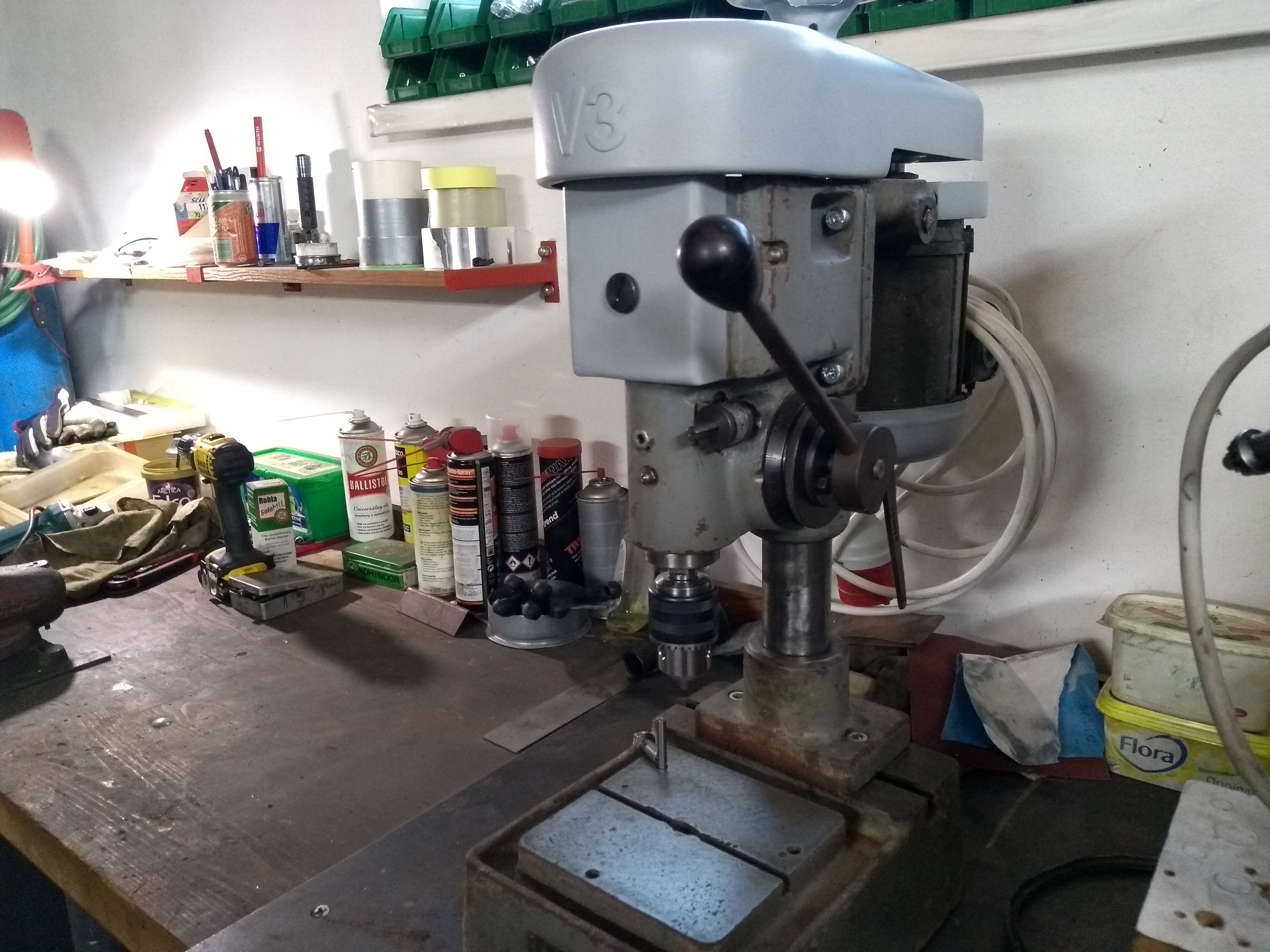 Taky zdravím.. Nojo, úprava:-) každej tomu říkáme jinak.Správně jsi pochopil,že to bylo na velké otáčky a proto jsem nabízel normální stolní vrtačku,se kterou bys  mohl bastlit i ty tvoje díry do  10mm To sklíčidlo tam bylo právě kvůli těm otáčkám,to možná chápeš..Co určitě ani náznakem nechápeš, je ta řemenice na plochej řemen. Jen tak mimochodem-celá ta soustava (kvůli životnosti ložisek,ale hlavně přesnosti vrtání) byla vyvážená.A můžu tě ubezpečit,že v  roce 1959 už bylo na světě světlo  (žárovky v wolframovým vláknem  se už daly běžně koupit za pár korun na každý vesnici v Jednotě),svět byl barevnej, auta ( tedy u nás)  jezdily na  vzduchem plněných pneumatikách a poháněl je benzín,kterej se už nemusel kupovat v apatyce, a kožený řemeny se používaly tak ještě u bucharů a mlátiček,ale v pohonech  takových strojů už byly rozhodně modernější vynálezy- na tyhle aplikace typicky nekonečně tkané řemeny, dokonce i se zátěrem anebo plastové( teď si nevybavím,jak se jmenovaly,vypadaly jako průhledná  hladká páska do páskovačky- a ty se dokonce na míru lepily..)