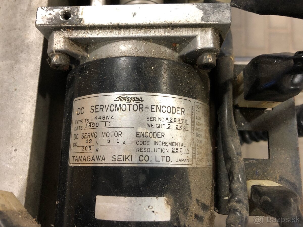 DC servo motory sú Japonské z roku 1990 značky Tamagawa typ TS1446N4 výkon 200W, príkon 43W a 51A. Je tu
