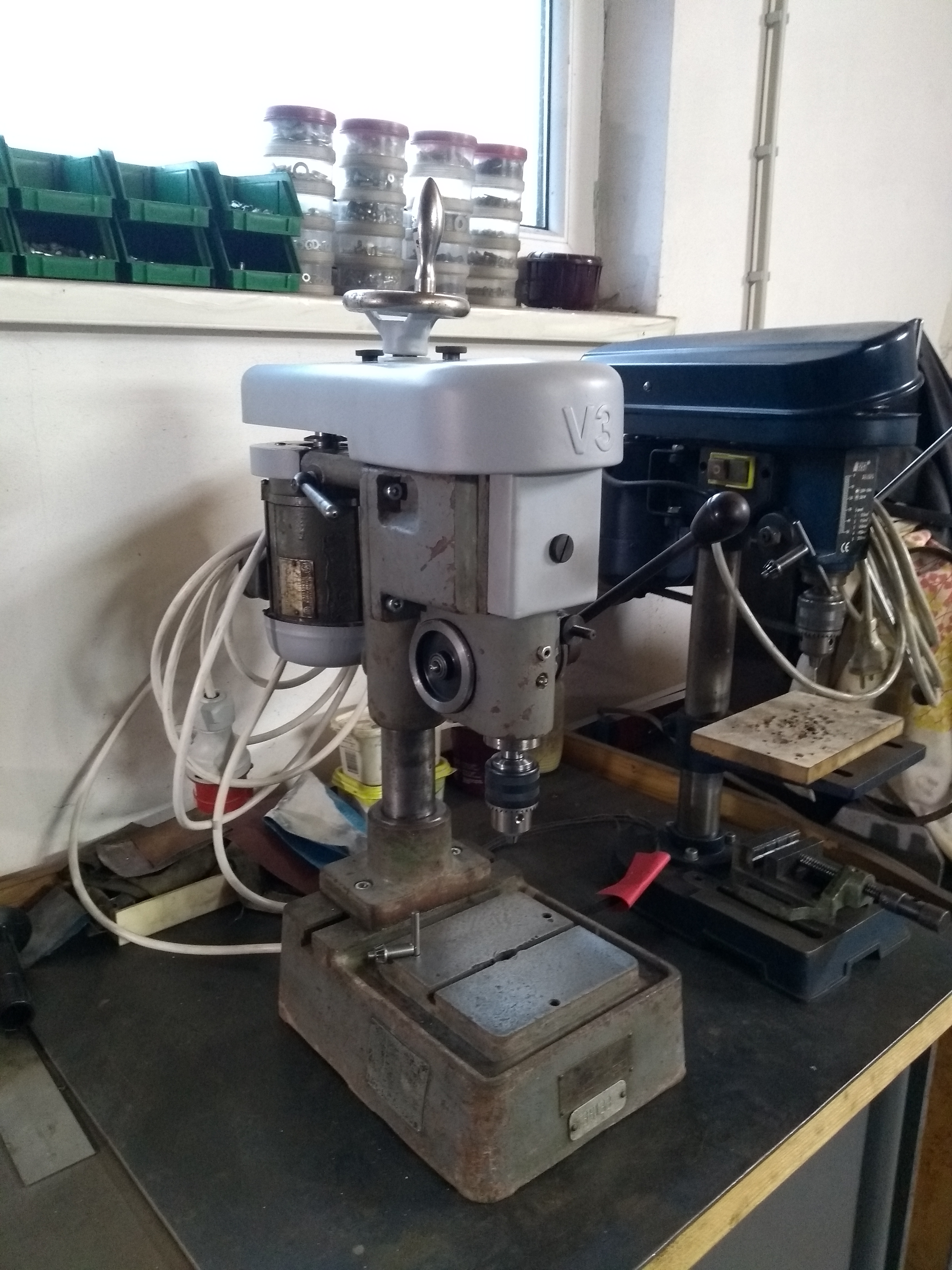 Taky zdravím.. Nojo, úprava:-) každej tomu říkáme jinak.Správně jsi pochopil,že to bylo na velké otáčky a proto jsem nabízel normální stolní vrtačku,se kterou bys mohl bastlit i ty tvoje díry do 10mm To sklíčidlo tam bylo právě kvůli těm otáčkám,to možná chápeš..Co určitě ani náznakem nechápeš, je ta řemenice na plochej řemen. Jen tak mimochodem-celá ta soustava (kvůli životnosti ložisek,ale hlavně přesnosti vrtání) byla vyvážená.A můžu tě ubezpečit,že v roce 1959 už bylo na světě světlo (žárovky v wolframovým vláknem se už daly běžně koupit za pár korun na každý vesnici v Jednotě),svět byl barevnej, auta ( tedy u nás) jezdily na vzduchem plněných pneumatikách a poháněl je benzín,kterej se už nemusel kupovat v apatyce, a kožený řemeny se používaly tak ještě u bucharů a mlátiček,ale v pohonech takových strojů už byly rozhodně modernější vynálezy- na tyhle aplikace typicky nekonečně tkané řemeny, dokonce i se zátěrem anebo plastové( teď si nevybavím,jak se jmenovaly,vypadaly jako průhledná hladká páska do páskovačky- a ty se dokonce na míru lepily..)