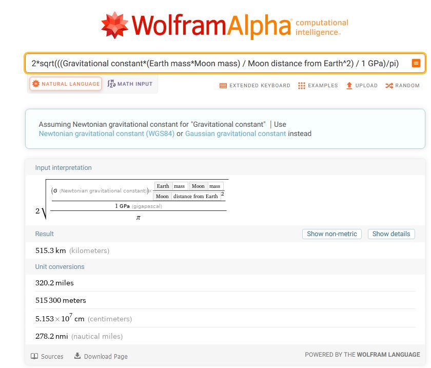 2*sqrt(((Gravitational constant*(Earth mass*Moon mass) / Moon distance from Earth^2) / 1 GPa)/pi)