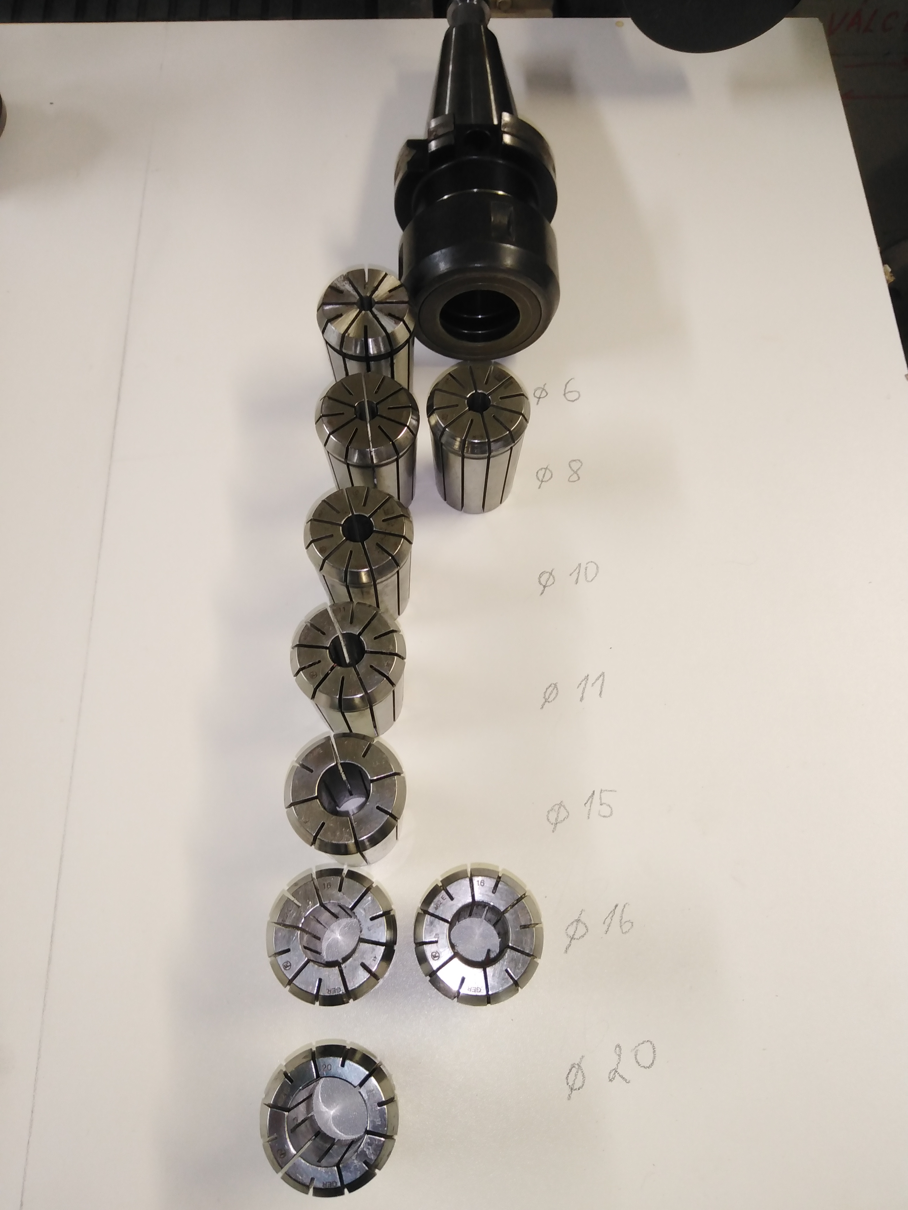 nemel by nekdo prebytecne Iso40 redukce a upinace na frezy. Napr. upinac ER32, upinace valcovych klestin od 2 do 26mm, redukce na morse kuzel, upinac celnich valcovych frez, atd.