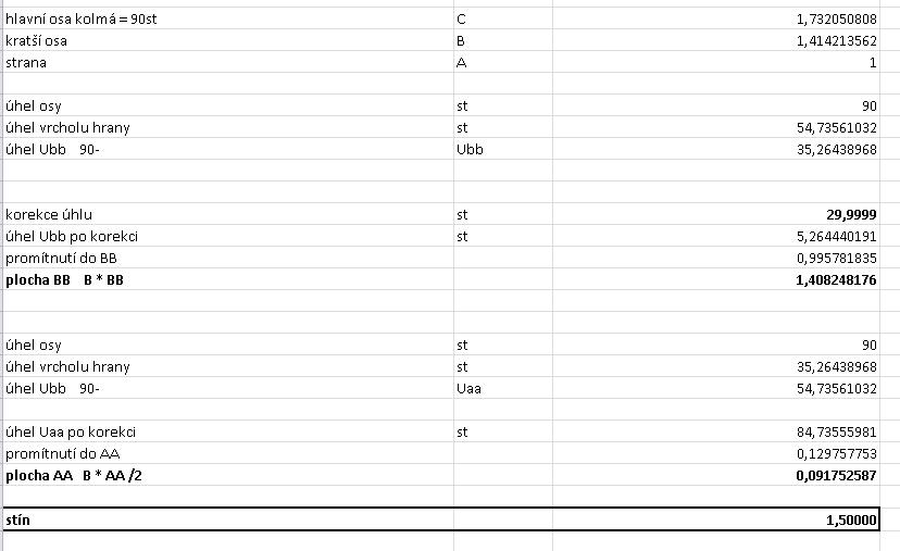 Já zkoušel počítat průměty na papíře, ale dojel jsem na to, jak se podle úhlu naklopení zkracují v 3D průměty délek stran těch rovnoběžníků.)
