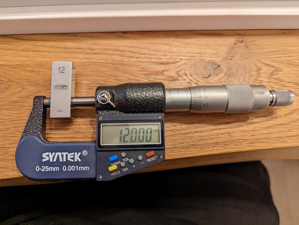 Koleje jsem rozbalil, nasadil vozíček a zjistil, že je to skutečně hlučné a kluzná varianta dle Víti bude opravdu nejlepší řešení. Vezmu do ruky mikrometr, udělám pár měření a zasměju je, že ten Víťa měl pravdu úplně ve všem, protože mi psal, že kolej 12mm bude 12 -0,02mm. Projedu na pár místech celou kolej a všude má prakticky konstantních 11,98 a nějaká tisícinka.