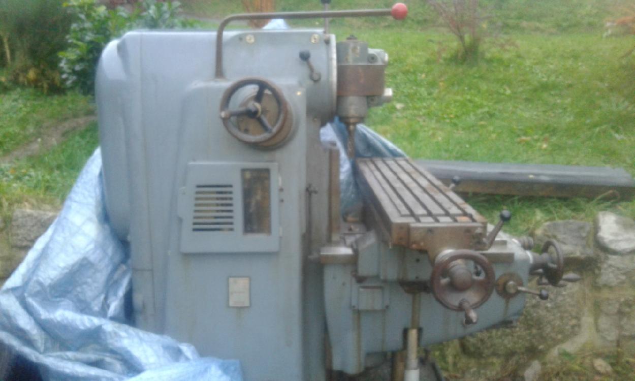 Mám jen starou nekvalitní fotku frézky, jak tam stála když jsem ji kupoval. Frézka je momentálně v garáži úplně v rohu ,aby se do garáže vešel traktor. Je celá Zastrčená v rohu .Není na ní bohužel zatím čas. Až vyjedu příští týden traktorem z garáže tak udělám nějakou aktuální fotku