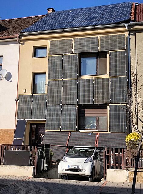 ak predpokladáme, že vzhľadom na odhadnutú veľkosť panelov (podľa veľkosti okien) sú to dajme tomu 135Wp panely, tak nech má 2kWp zvislo a 2kWp šikmo uložených panelov.