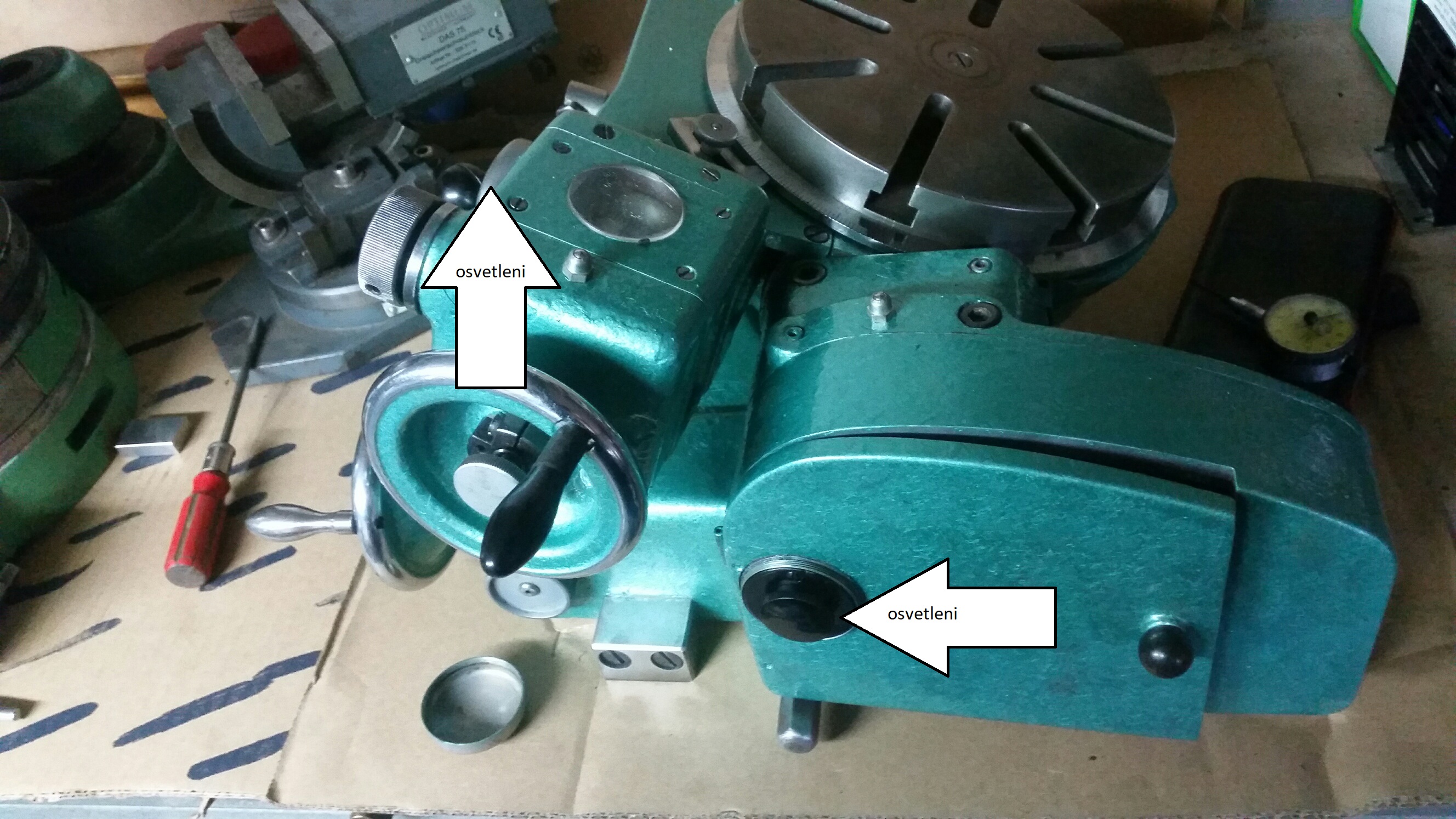 Ten WMW stolík (ak si dobre spomínam) sa pripája vidlicov do pravej strany stolu na vrtacke (tam kde sa pripája aj optická sonda), a potom je podsvietený aj nonius, aj indikátor. Zajtra to pozriem, nakoľko naposledy som mal ten stolík na vrtacke tak pred 5timi rokmi.