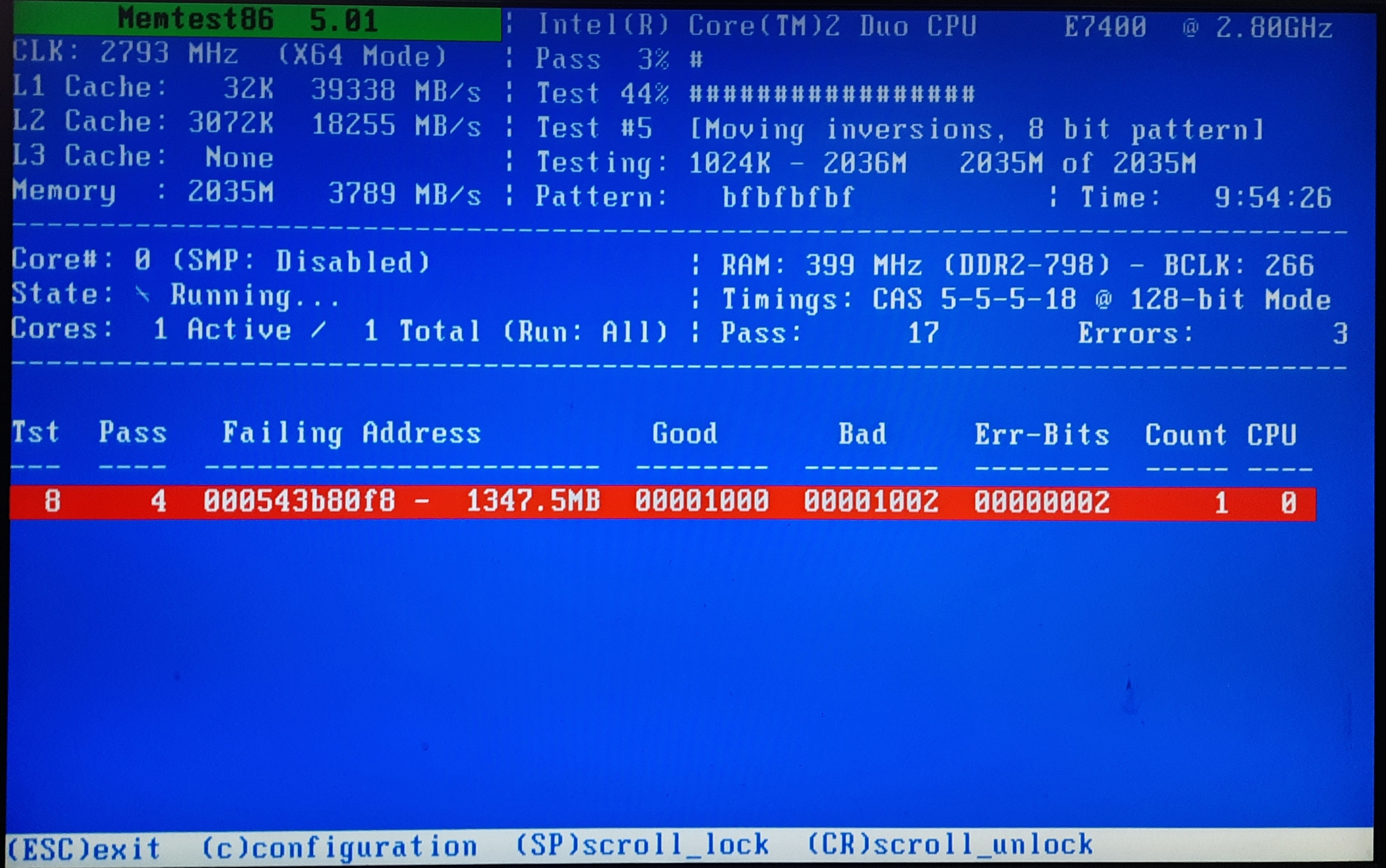 Zkusil jsem ten Memtest86+ bezet pres celou noc a takhle dopadl: Konkretni chybu pise jednu, ale v pocet chyb 3. ???