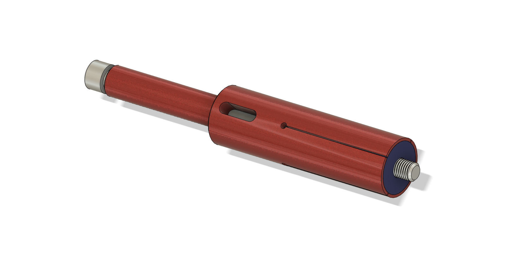 OK, takže brusičský trn to nemůže být. To bych nepovolil. Udělám to z redukce Mk5/Mk5. To bude dostatečné velkém abych ten kužel srazil na stopku 26mm do kleštiny a uvnitř provrtat díru pro vytahovací šroub a bude to fungovat stejně jako na frézce. Musím mít ten vtahovací šroub možnost dotáhnout a to u toho brousičského nejde, protože není na to určen. Dovnitř dám Mk5 pevný hrot, který zkrátím a provrtám skrz. Tem se bude vtahovat a tím pádem roztahovat pouzdro. Vychází to celkem přijatelně.