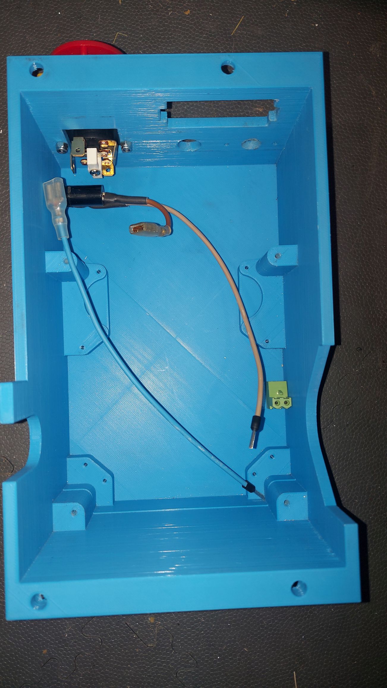 Osazení přívodu k regulátoru v novém krytu - vypínač síťového napětí