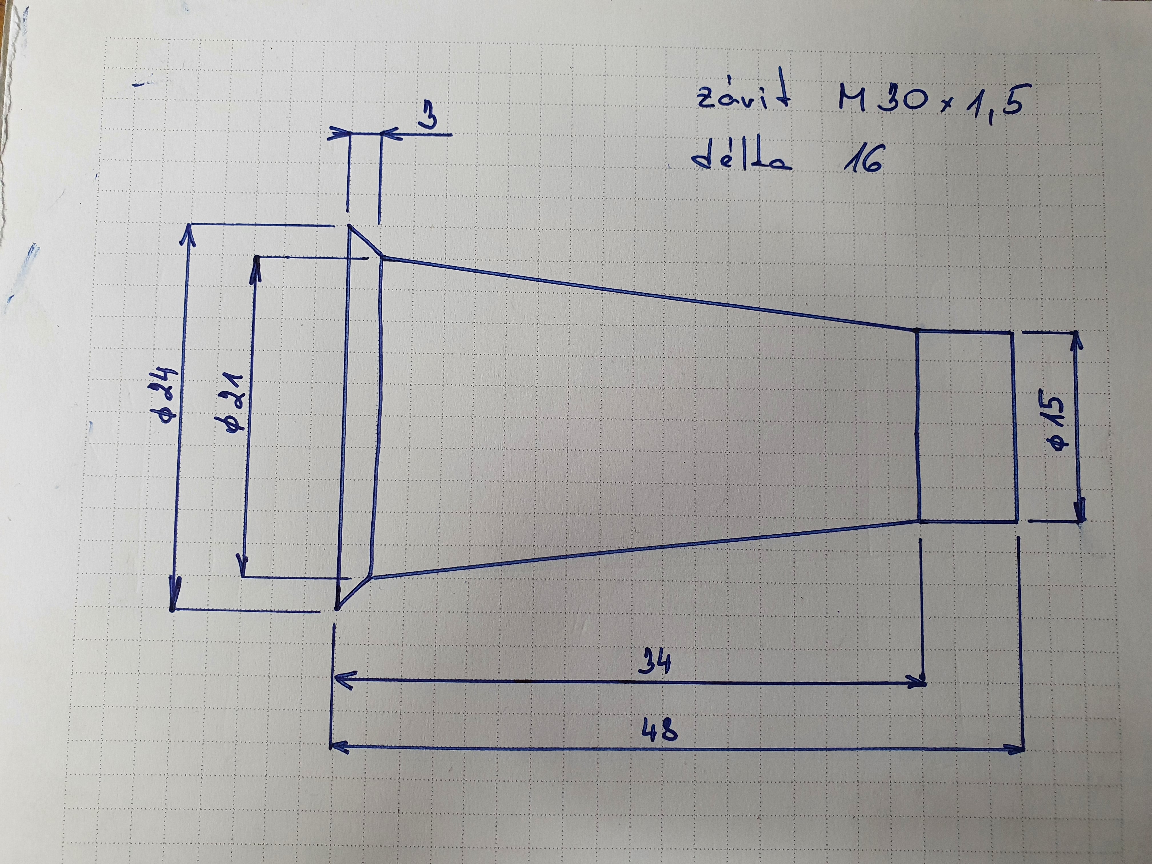 Ahoj dneska jsem to v ramci moznosti premeril, nemam treba subito... takze jako merici trn jsem pouzil stopky dvoubritek :D Nema nekdo aspon na pujceni jednu, na vyzkouseni? Matka ma mit M30x1.5 Diky