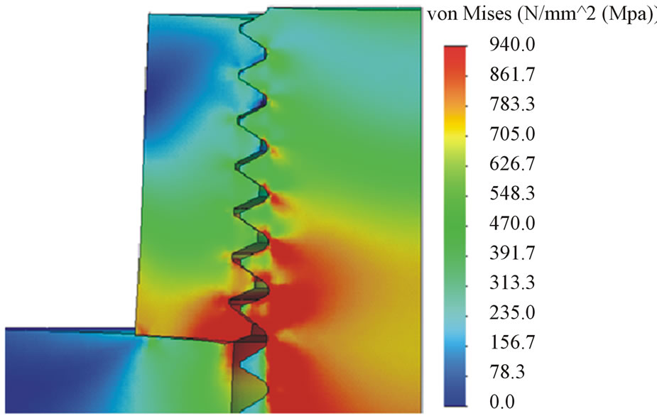 Jenom pro představu, jak vypadá rozložení tlaku u závitového spoje.