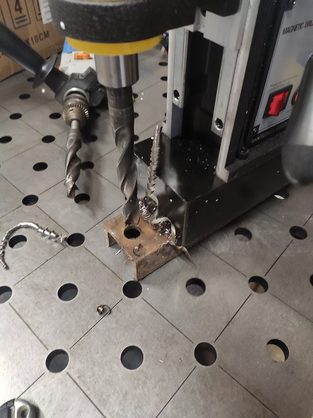 Na ten v odkazu zapomeň, to je tak na elektroskříně, jinak vyhozený prachy. Kdybych měl řešit to co ty, tak bych si buď půjčil tu magnetickou vrtačku a nebo si udělal dvě spešl svěrky kterýma bych chytal klasikej stojan na vrtačku (třeba osu vrtačky vytočit do boku mimo základnu) do právě nevrtaných děr. Dělal jsem to několikrát. Používám starou dvourychlostní narexku bez regulace, tak jednou rukou ovládám páku stojanu a druhou brnkám na vypínač vrtačky. Vrták na takovýhle převrtání neni špatný vzít nějakej starej paznecht, zkrátit ho, stočit stopku do sklíčidla a kdyby se to nepoužitelně zakusovalo, tak mu zbrousíš menší úhel čela ( na hraně kotouče se zbrousnou čela břitů) a on se pak nebude zakusovat.
