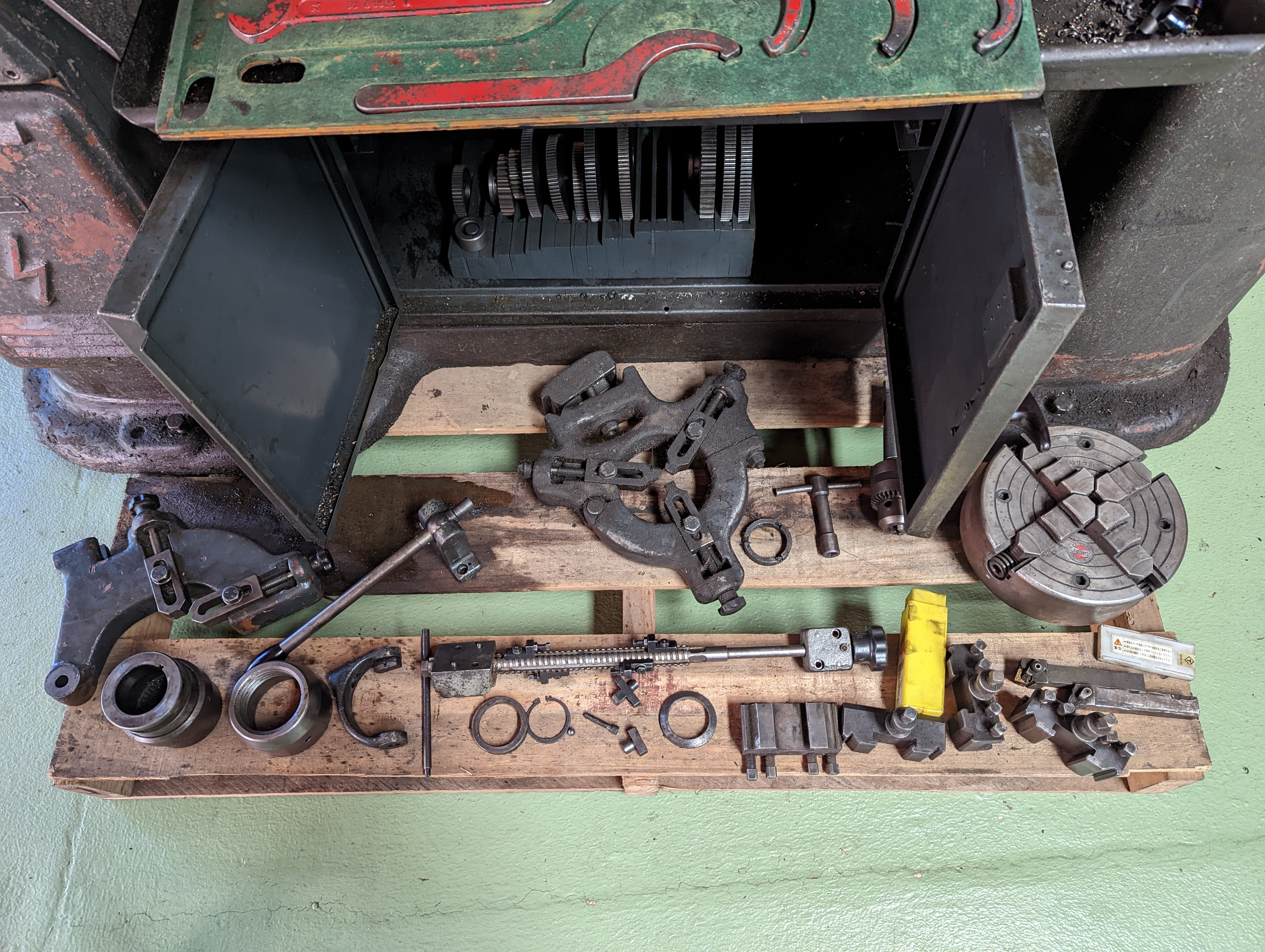 Mám steady rest a follow rest (česky 'obruba'?) a některé části kleštinového systému.