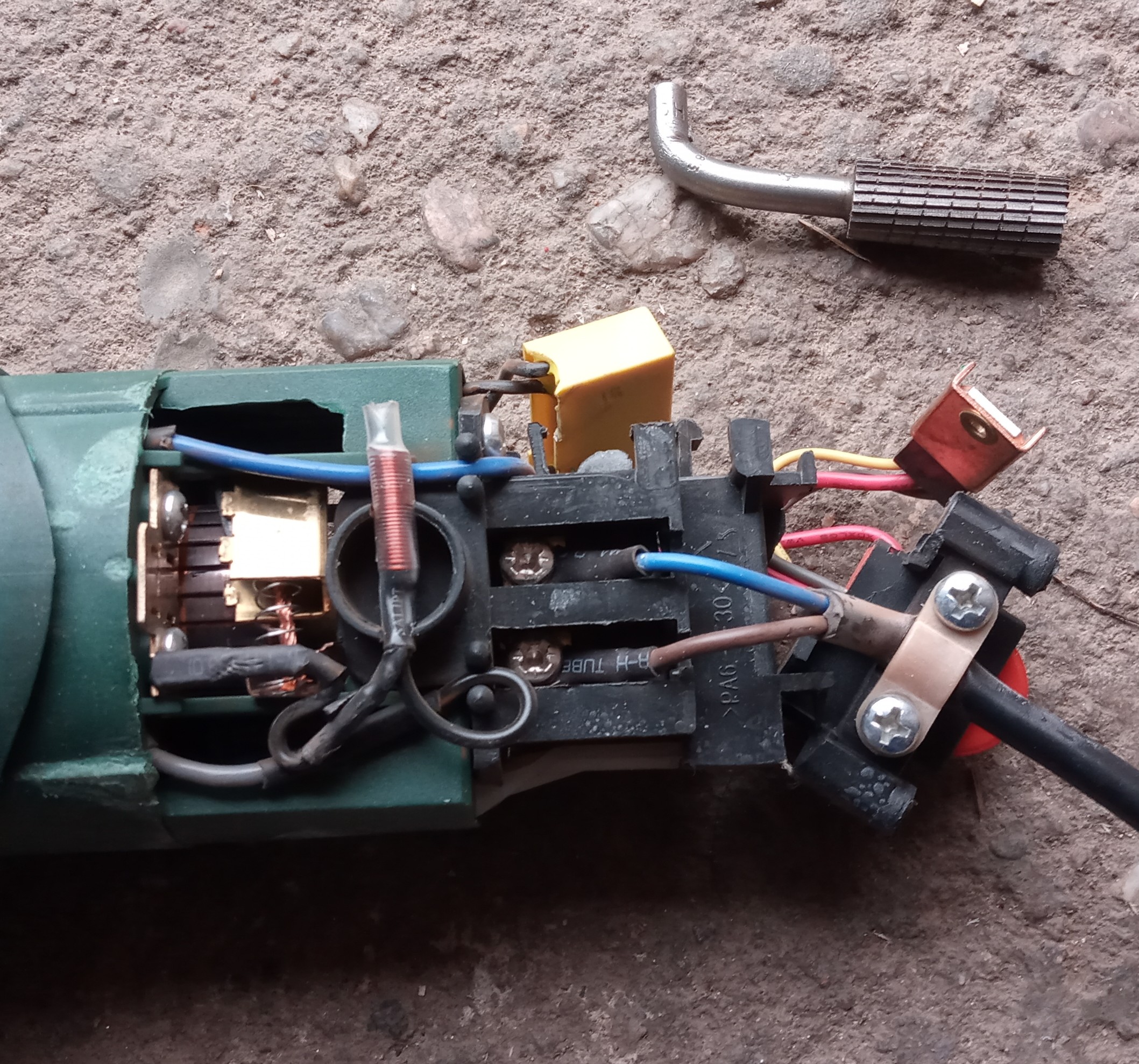 Kondenzátor 10 mikro, měřím 0,5 mikro. Vlastníkům brusky doporučuju koupit jeden do zálohy, nebo rozebrat a vytáhnout ze svorkovnice, dokud funguje.