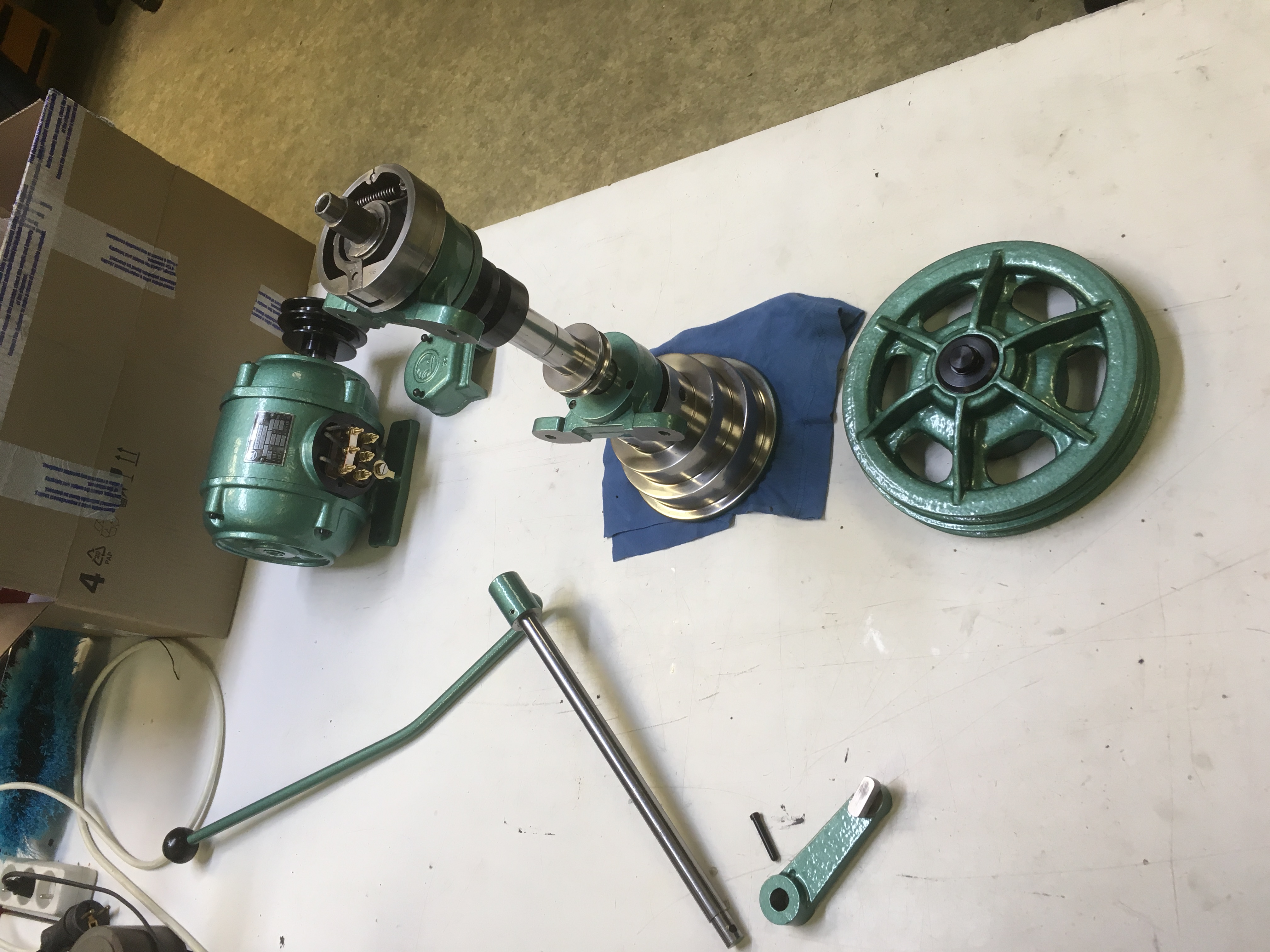 se zapne motor a ten se začne otáčet a pomocí klínového řemene otáčí také litinovým kolem spojky, která se volně otáčí na hřídeli jenž stojí a stojí tedy i stupňovitá řemenice na plochý řemen a stojí tedy i vřeteno soustruhu, Jestliže chceme vřeteno rozběhnout posuneme páku ovládání spojky (dlouhá páka vycházející z přední části stojanu) do leva čímž dojde k zablokování spojkového kola na hřídeli a hřídel se stupňovitou řemenicí se začne otáčet o pomocí plochého řemenu roztočí vřeteno. Vůbec netuším v jakém stavu je zbytek soustruhu a zda se vyplatí do toho investovat nějaké úsilí . Samozřejmě, že můžete mít štěstí a podaří se Vám koupit od někoho celou tu spojku ale moc nadějné bych to neviděl . Jako reálné nouzové řešení bych viděl použít místo předlohové hřídele se spojkou jen hřídel a na jedné straně na pevno nasazené kolo pro klínový řemen a na druhé straně řemenici na plochý řemen.
