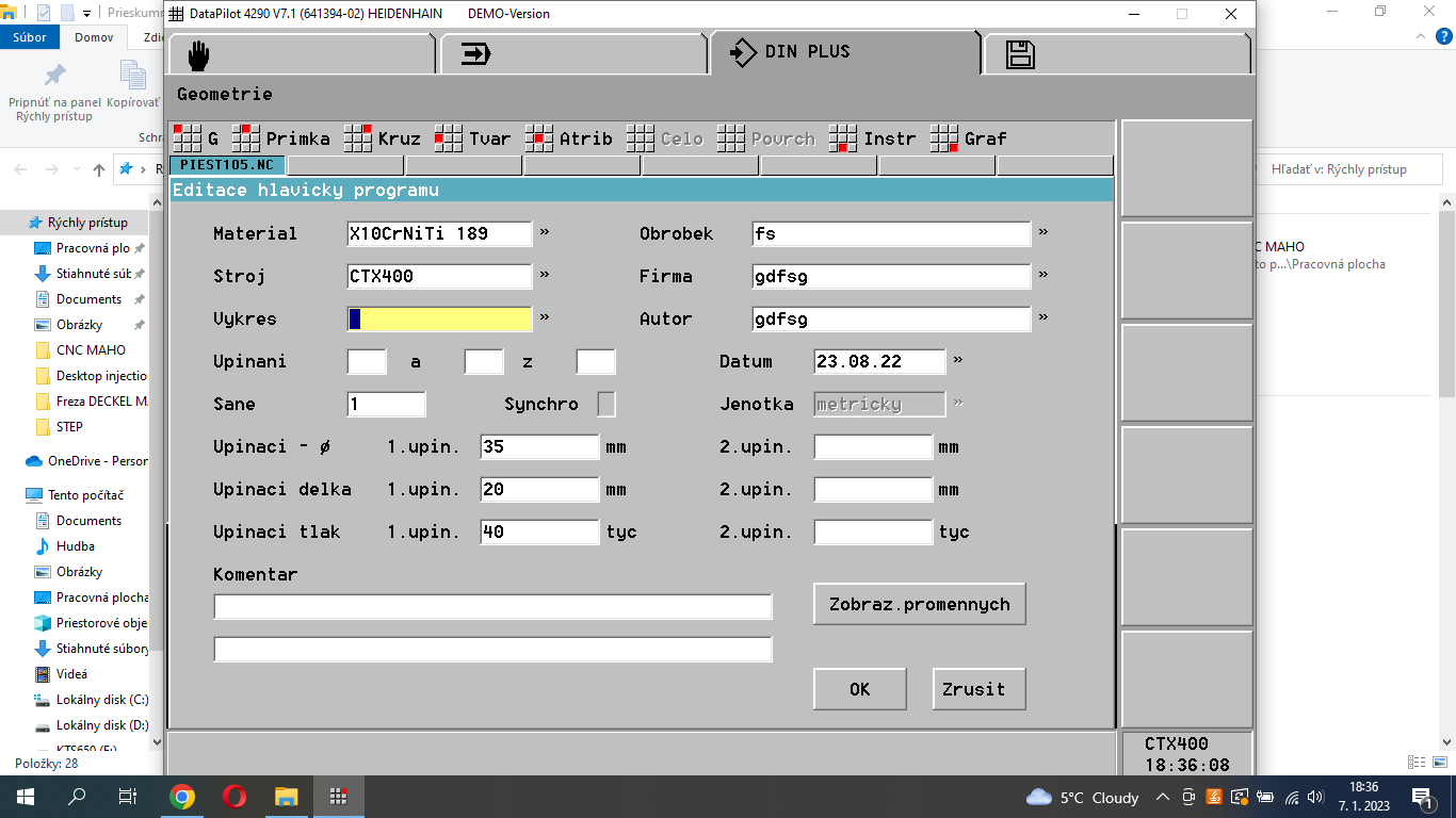 Snažím se naučit programovat. Nainstaloval jsem do PC simulátor Heidenhain Datapilot 4290, ale nejde mi spustit simulace. Zřejmě je to proto, že v tabulce nástrojů je u nástroje napsáno Stav Vypnuto.