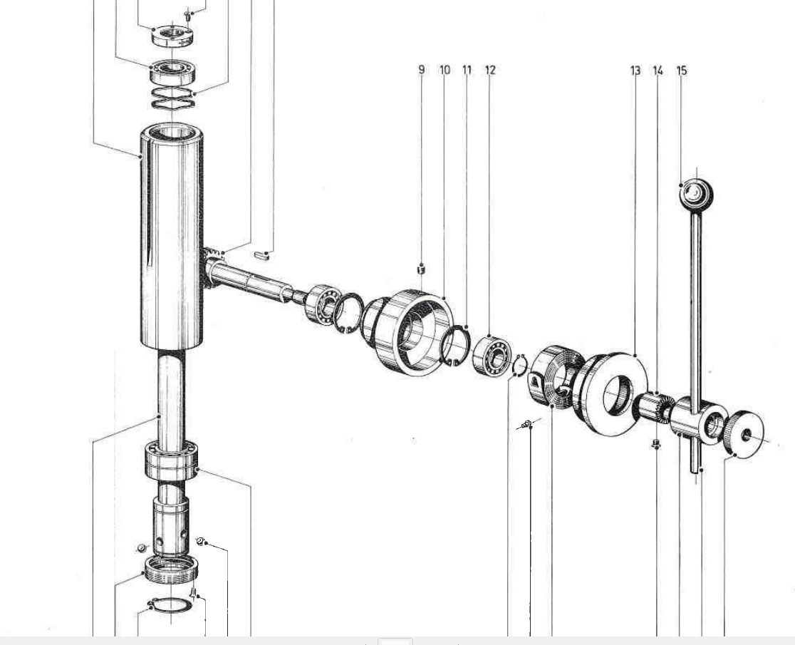 Přesto, že je obecný konsenzus v uložení ložisek v pinole jakékoli stolní či sloupové vrtačky. Jedu ze spodu. Axiální, vymezovací prvek, radiální, radiální... A proč axiální na začátku? Hypotéza: trubka na koncích radiální a mezi nima axiální. Ale to tam moze byť co chce potom. Vždyť chci, aby se síla po ose při tlaku vrtáku rozprosprostrela pryč od epicentra, tak proč bych to dával doprostřed, když největší tlak je na konci vřetene ...